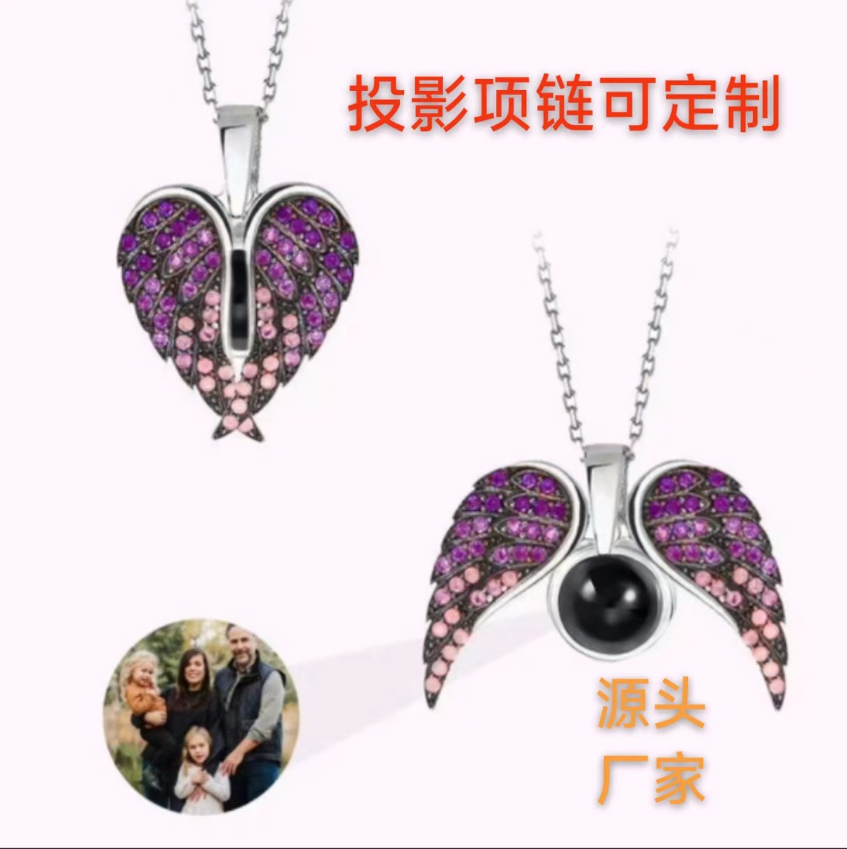 感謝祭クリスマス投影ネックレスカラフルな写真カスタムメイドスノーフレークエンジェル投影クリスマスツリーペンダント