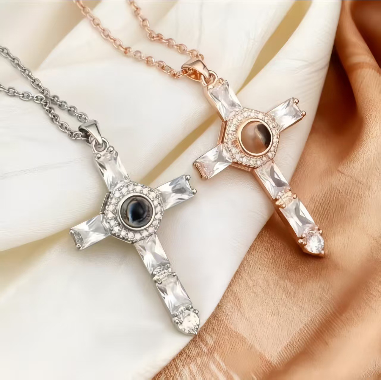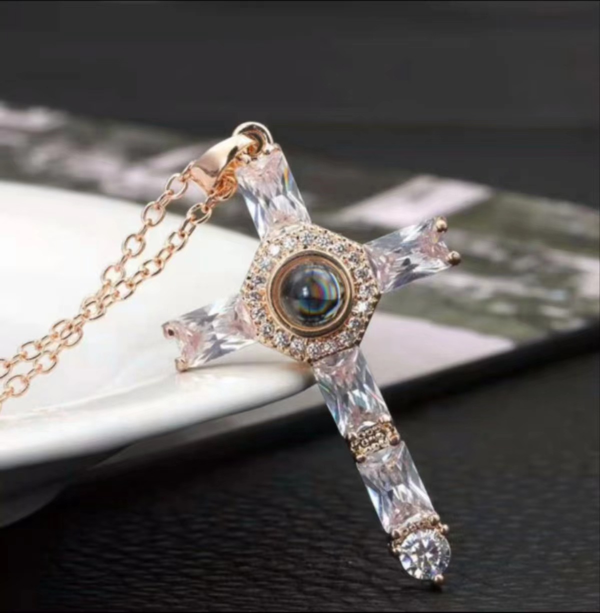 クロス投影ネックレス 女性用 個性的なデザイン 銅にジルコンを象嵌したクロスチェーン メーカー直販 ネックレス 女性用 色褪せなし