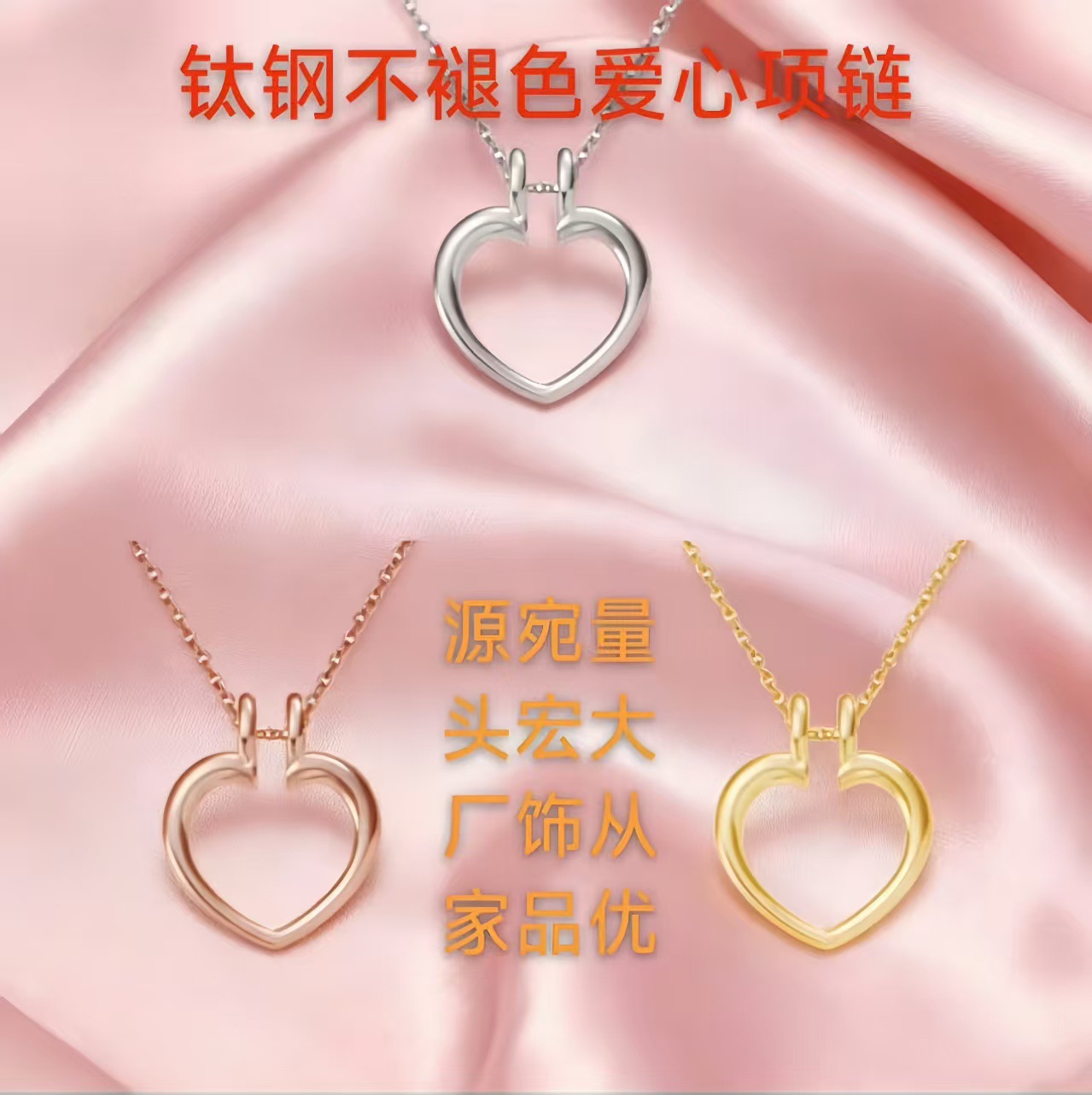 チタン鋼製ハートネックレス卸売、女性用シンプル高級感小物、指輪スタンド、色褪せなし、工場直販
