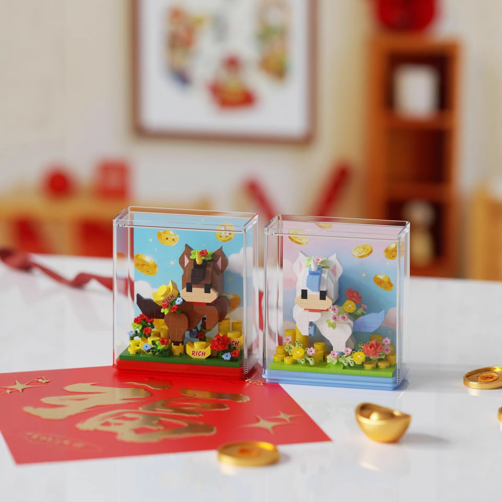 兼容乐高马年生肖吉祥物微颗粒积木拼装玩具创意新年礼物diy摆件