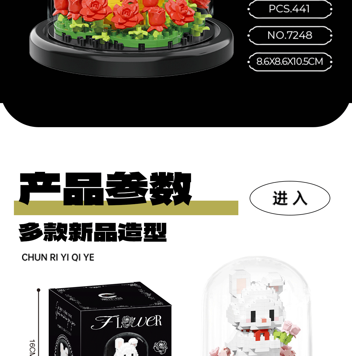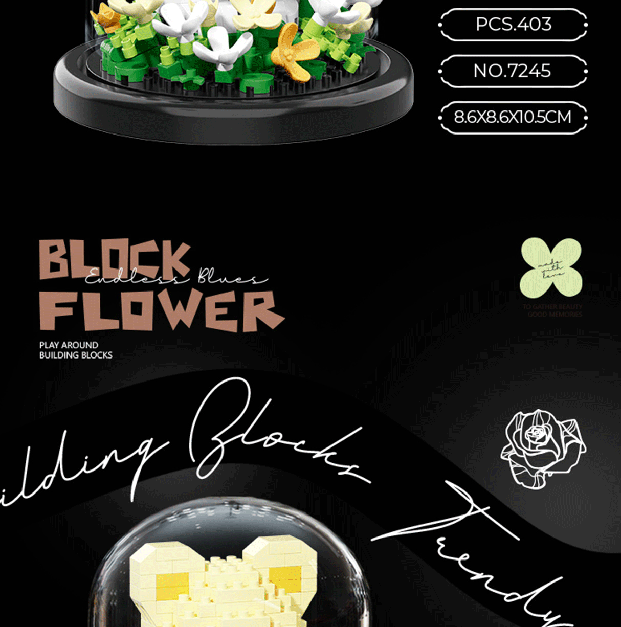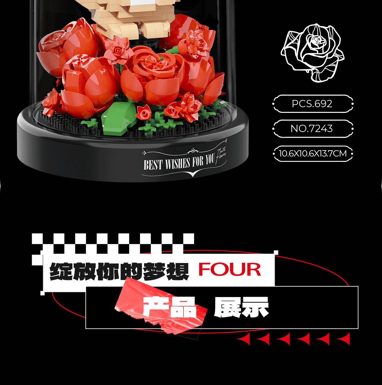 永生花積み木花鉢植え積み木玩具バラ花シミュレーション装飾花置物子供知育玩具