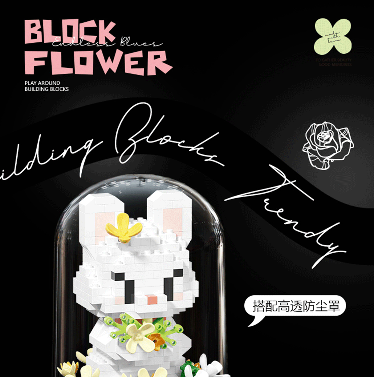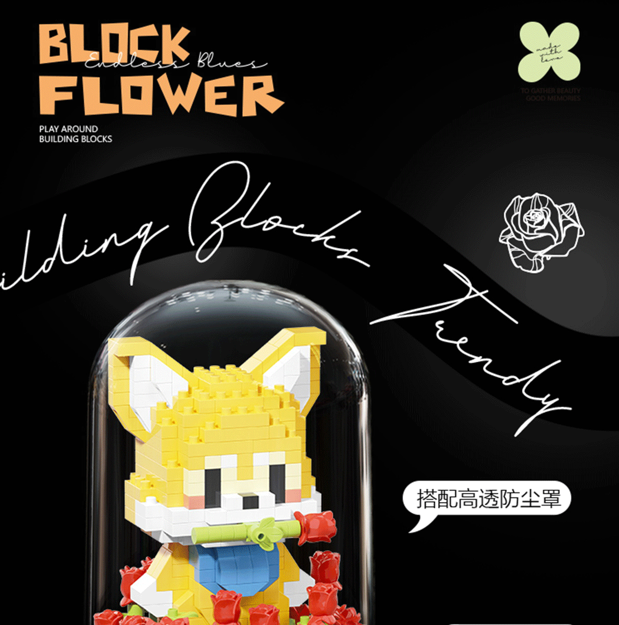 バラ永生花萌寵花園の小さな粒の積み木の組み合わせはレゴの男の子と女の子の子供のおもちゃのプレゼントと互換があります。
