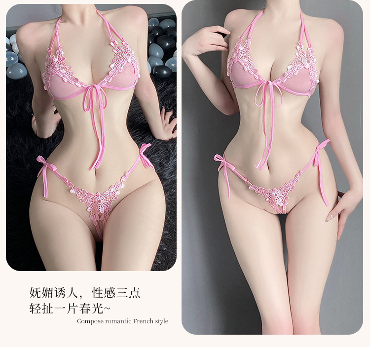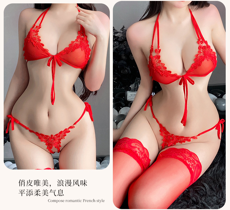 魅力的なウサギの趣味の下着のセクシーなレースの誘惑の3点式のブラジャーの下着の女性の透明なパジャマのスーツの卸売り006