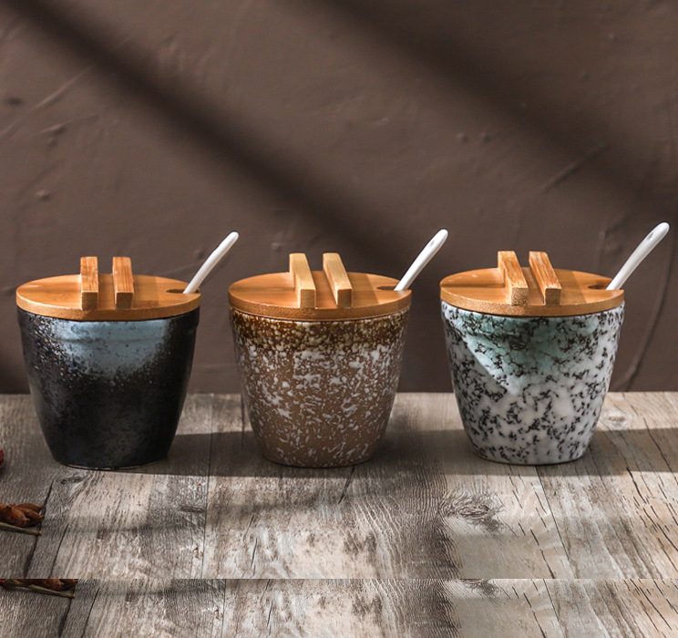 日本式陶磁器調味料缶家庭用厨房塩味の素調味料箱調味料缶セット商用焼き唐辛子油缶