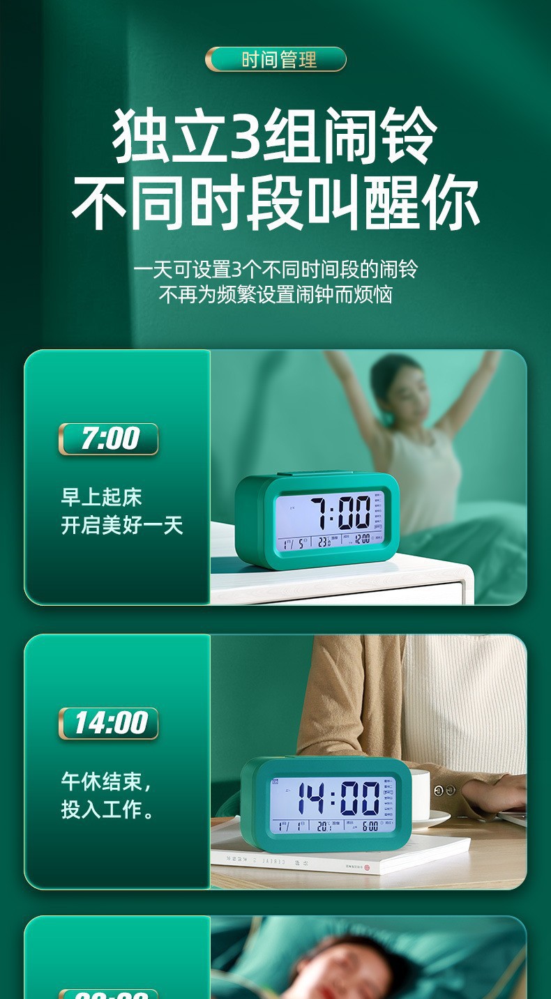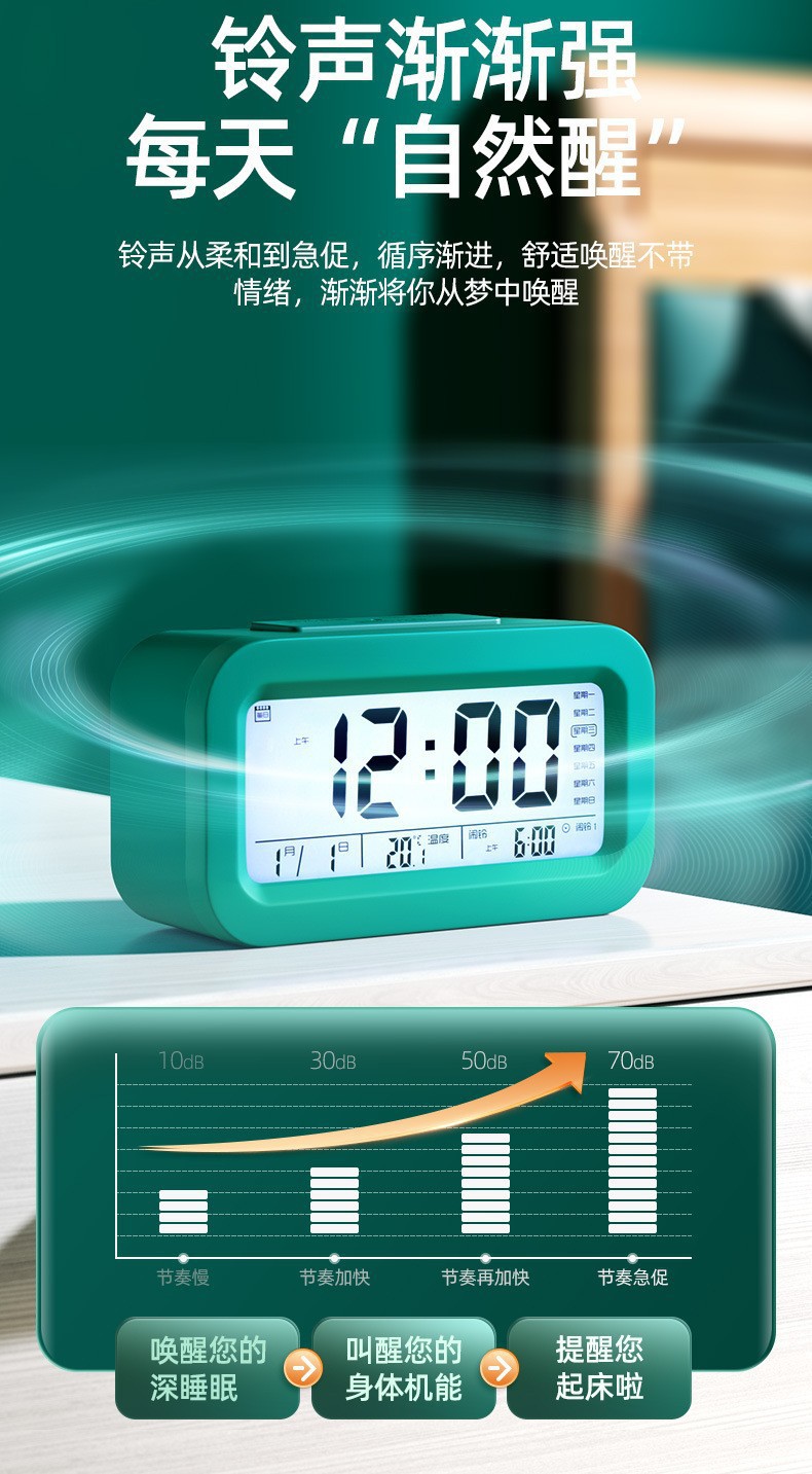 電子目覚まし時計、学生用、静音、寝室用、スマート、夜光、デジタル時計、音楽、大音量、壁掛けデジタル