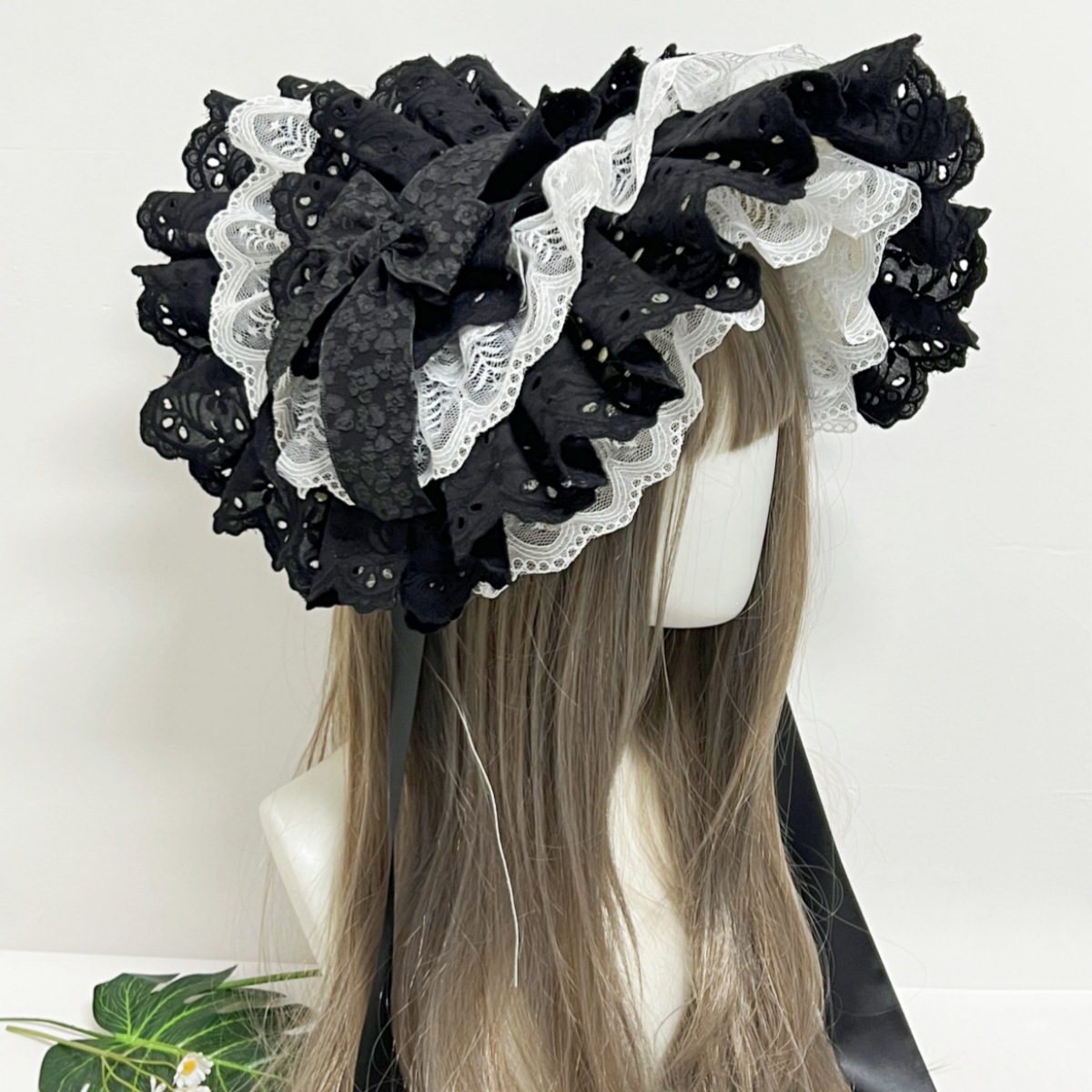 オリジナル手作りLOLITAロリータLO娘ダークレースボナイトbntダークスタイルドレス髪飾り草