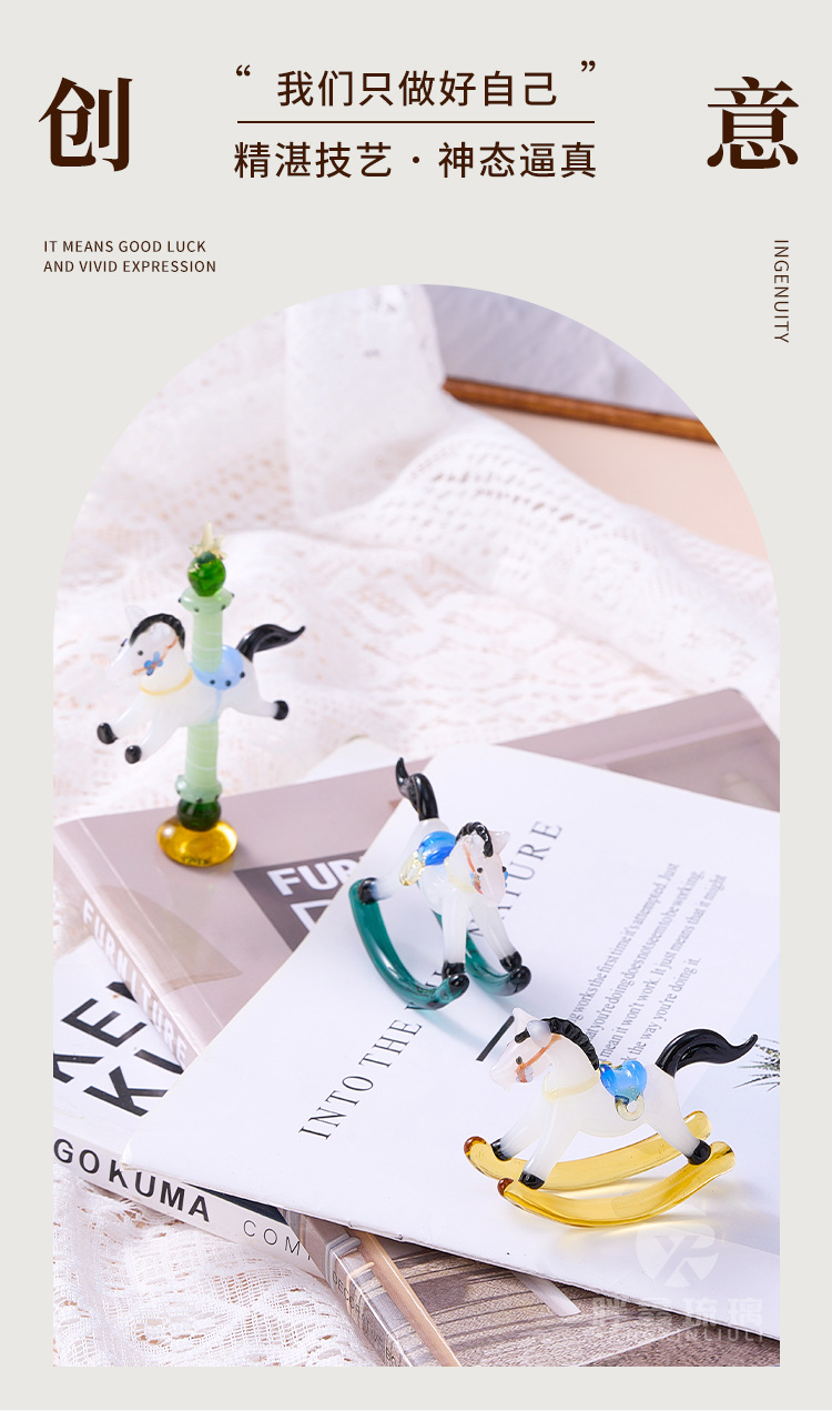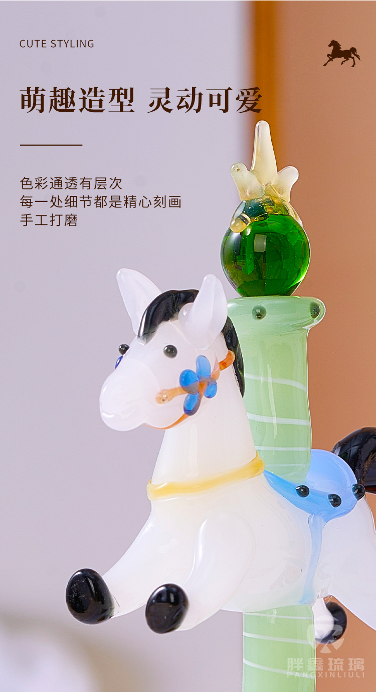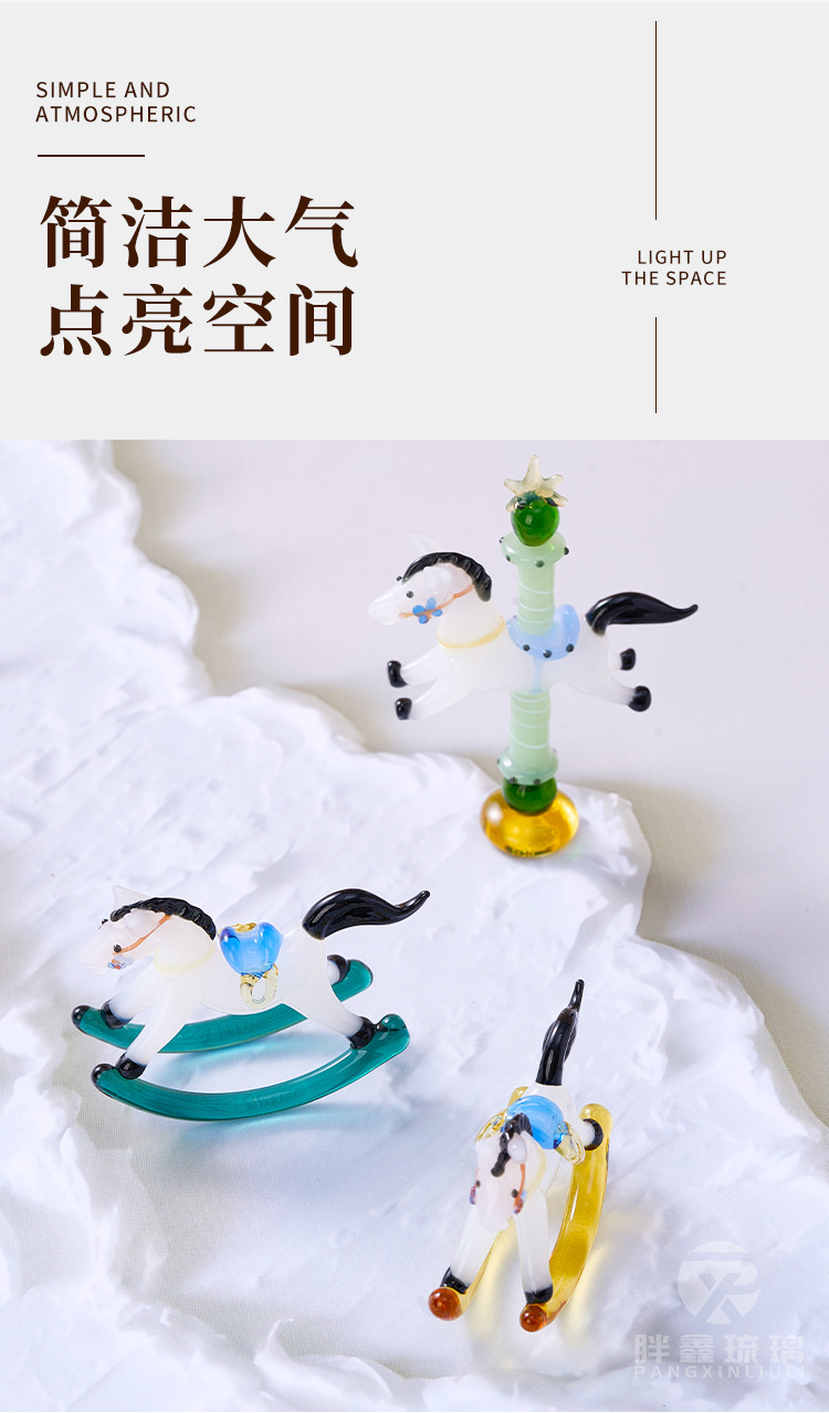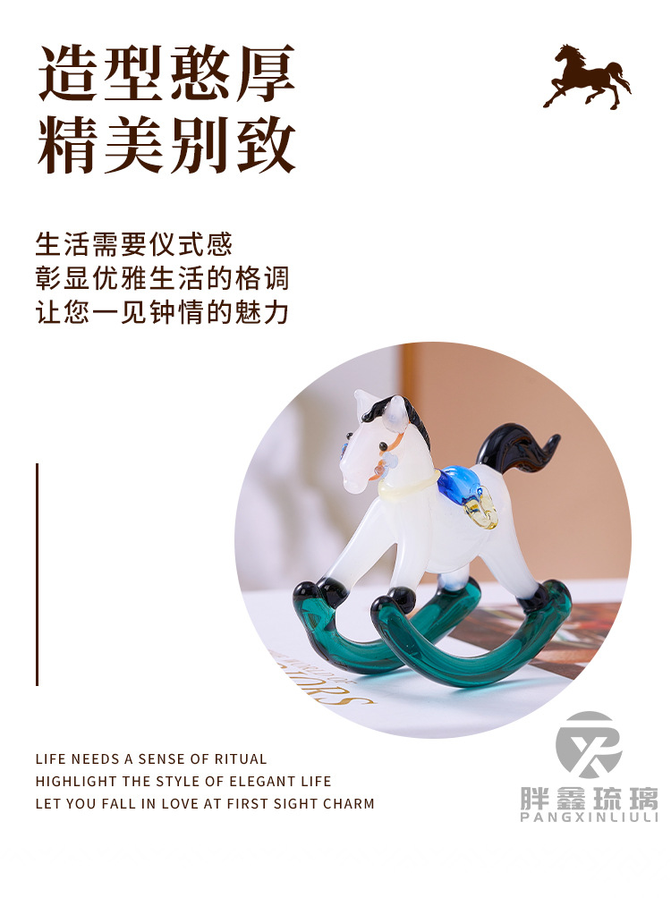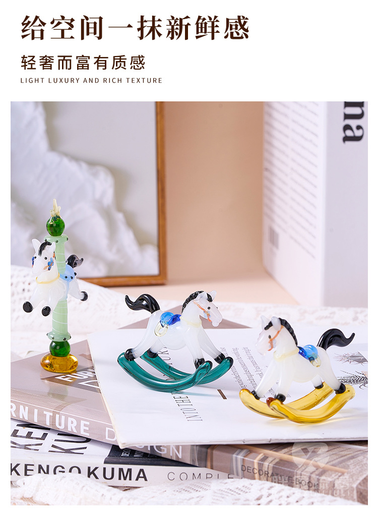 淄博琉璃摆件摇摇马可爱客厅玄关电视柜办公桌面装饰马上有钱礼物