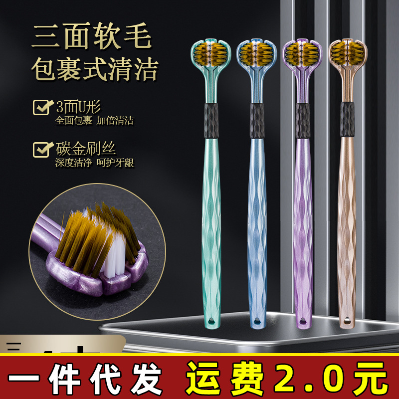 大人用の柔らかい毛の三面歯ブラシ、舌苔を削るための立体的な3ヘッド3Dタイプ、家庭用手動配送卸売ディープクリーニング