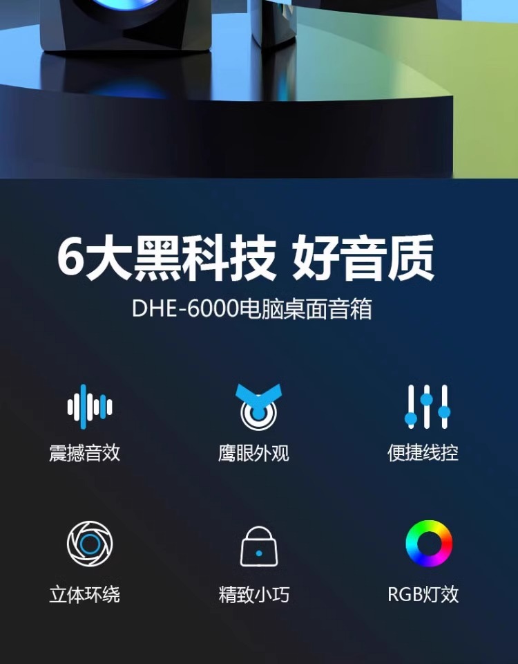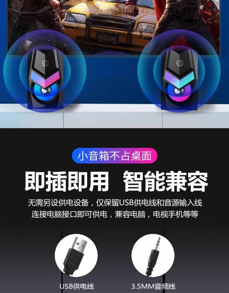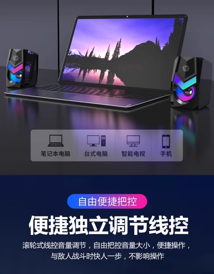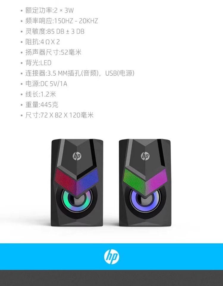 HP/HP DHE-6001コンピュータスピーカーデスクトップノートブックRGB発光有線マルチメディアオーディオクロスボーダー
