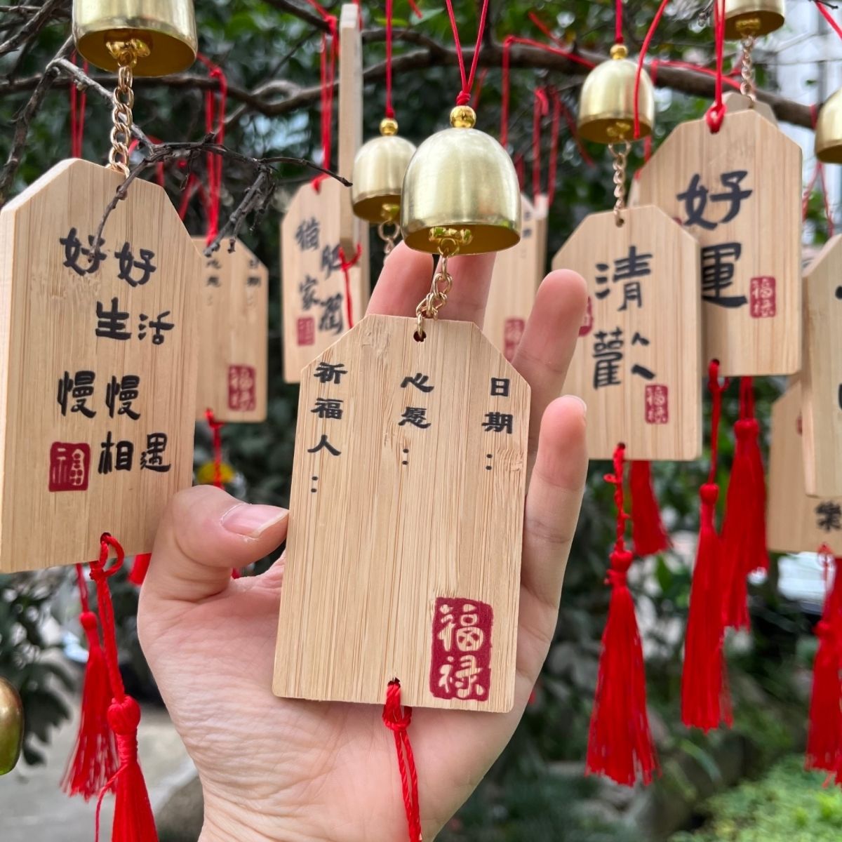 风铃祈福牌许愿牌吊牌雕刻内容印花印刷logo批发景区文创礼品