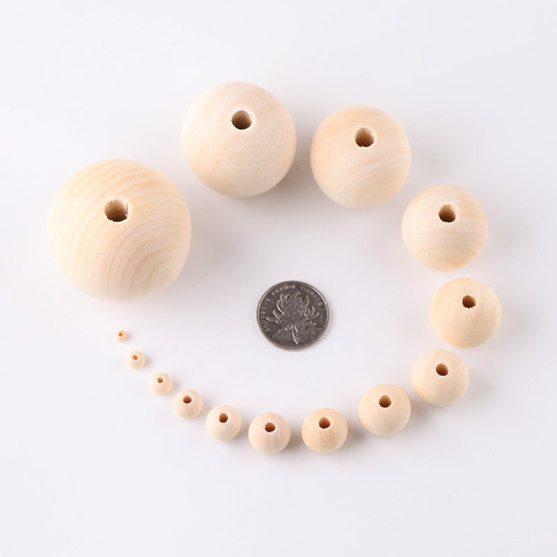 メーカー卸売り原木ビーズ6-50mm荷木本色木珠丸球木質散珠アクセサリーdiy部品