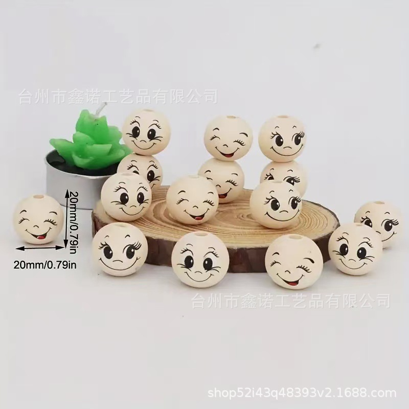 沈魚木珠 新型 クロスボーダー Amazon ベストセラー 20mm 初の笑顔木珠 DIY アクセサリー オリジナル ラウンドビーズ