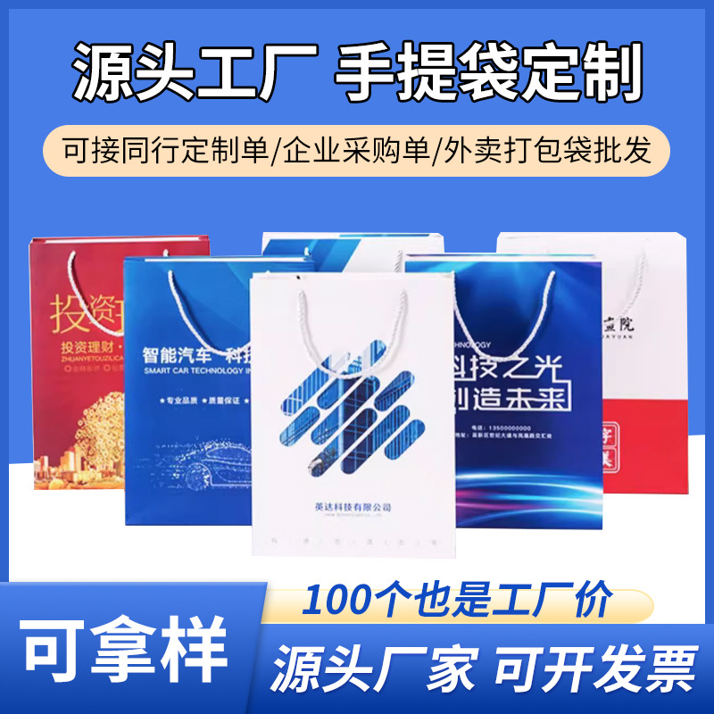 ビジネス手提げ袋会社企業宣伝包装袋印刷ロゴ白紙紙手提げ袋一括卸売り