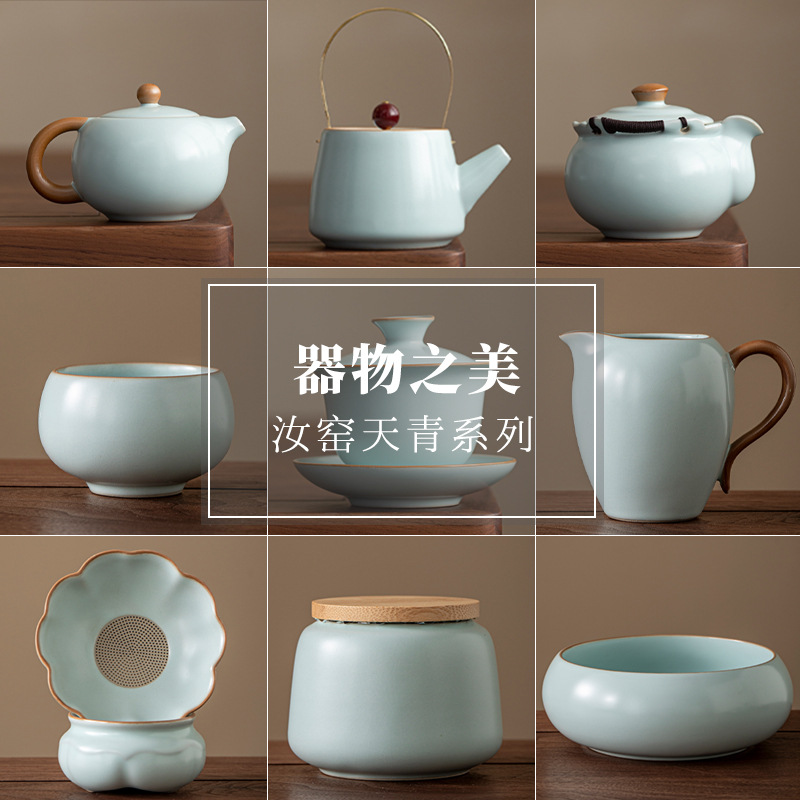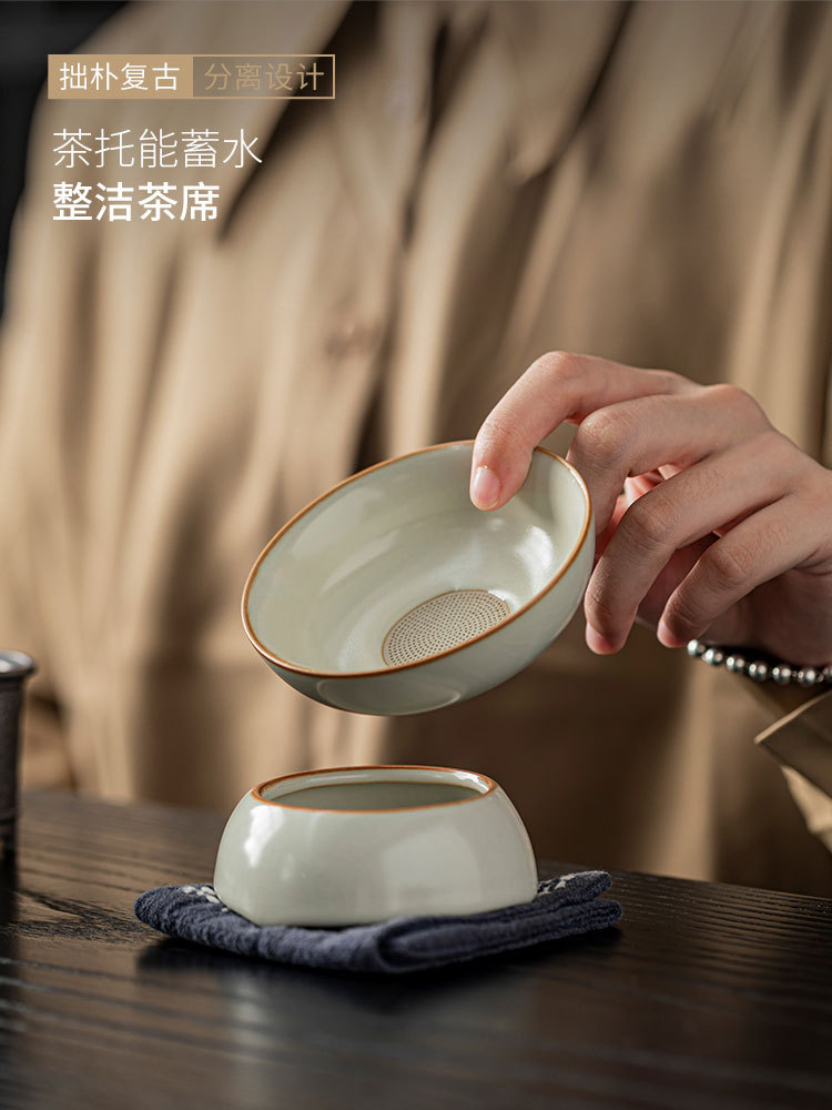天青汝窯全磁器針穴茶漏れ工夫茶器清潔で衛生的な茶水分離セラミックス一体フィルタ