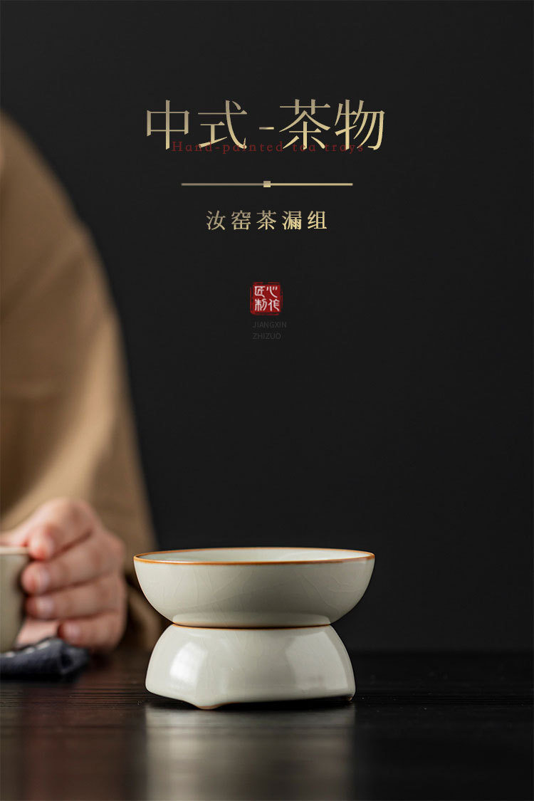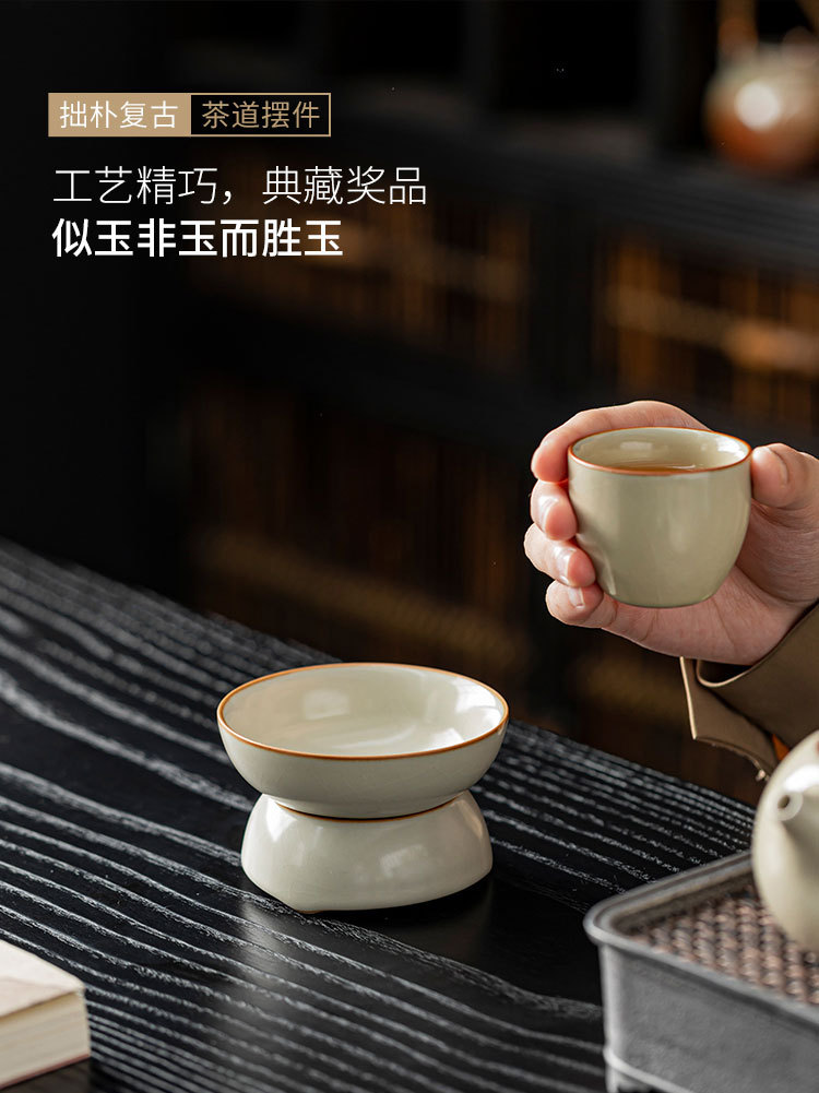汝窑陶瓷茶滤茶叶分离过滤网滤茶器泡茶神器桌面茶台摆件茶道配件