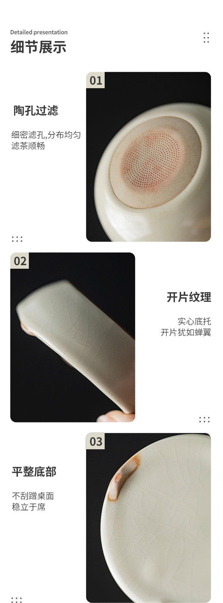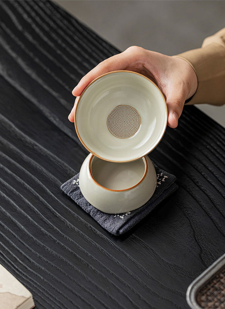 哥窑秘釉全瓷针孔茶漏功夫茶具干净又卫生茶水分离陶瓷一体过滤器