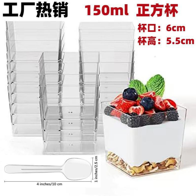 工場出荷150ml角型ゼリーカッププリンデザートカップティラミスカップ使い捨てプラスチックムースカップ