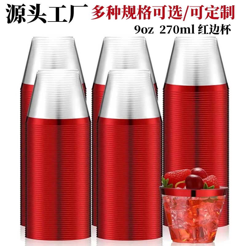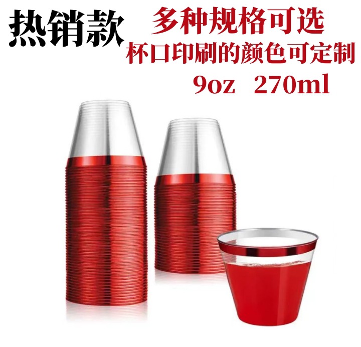 アマゾン9オンス航空カップ丸口ウイスキー箔押しカップ使い捨てプラスチックps厚布丁カップ