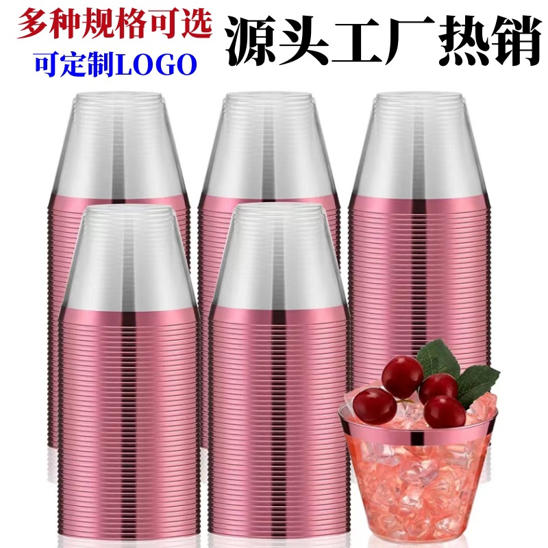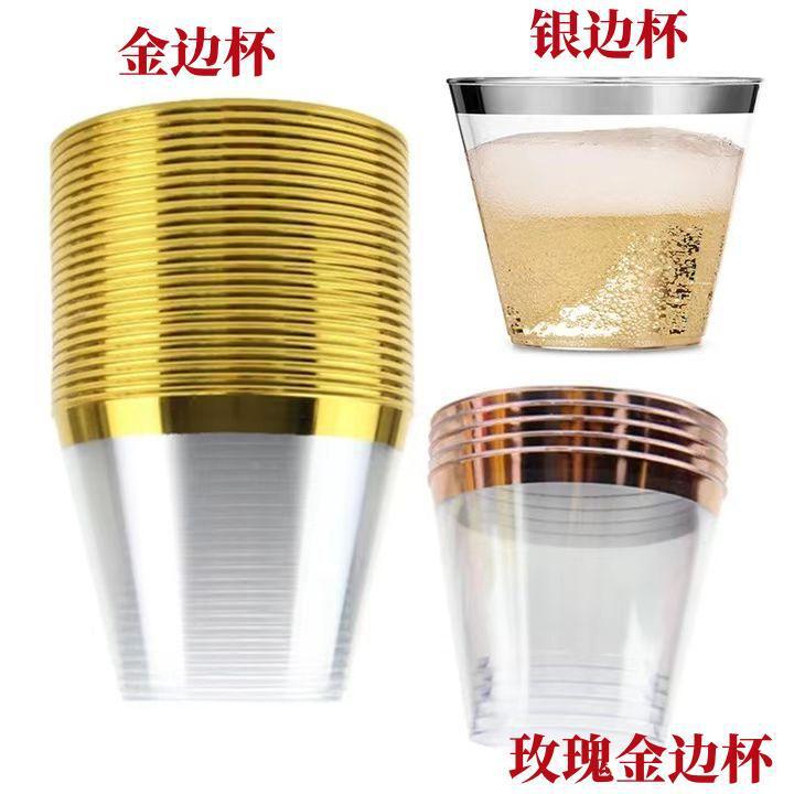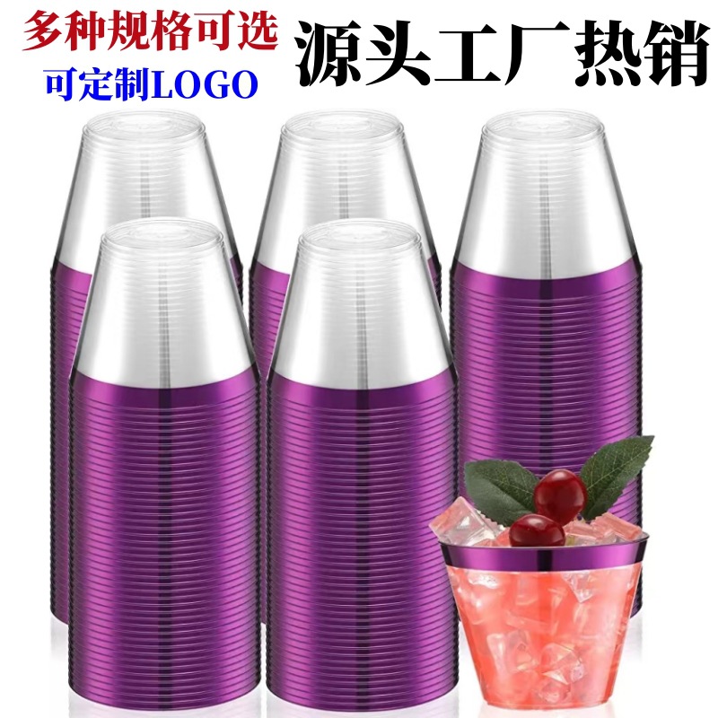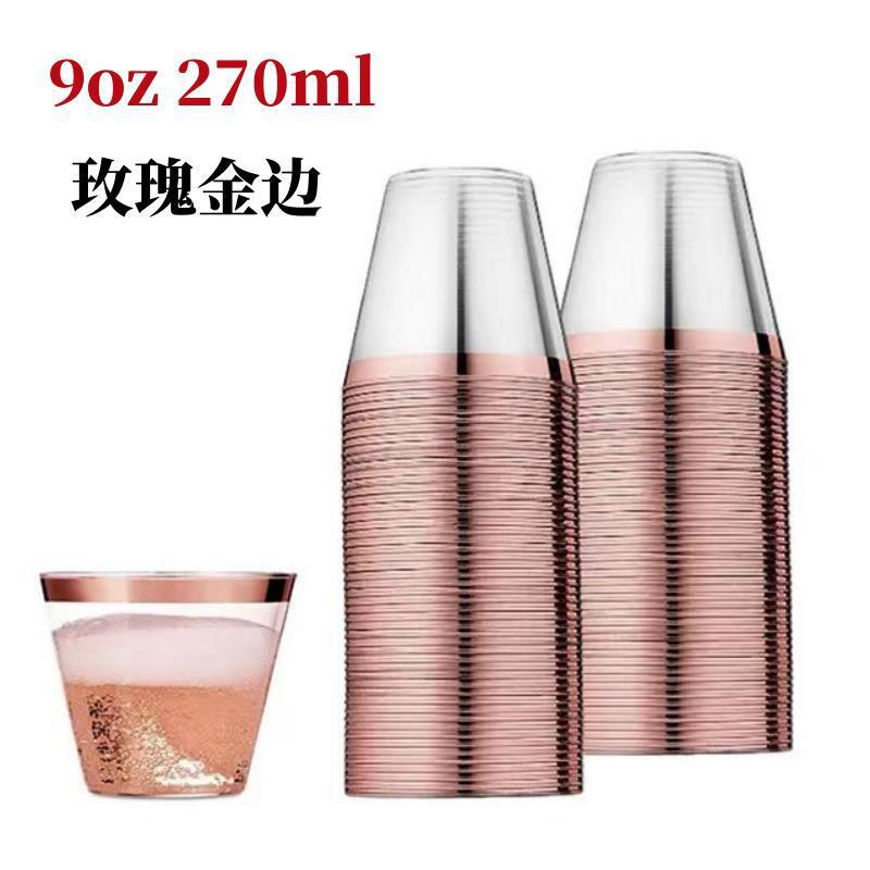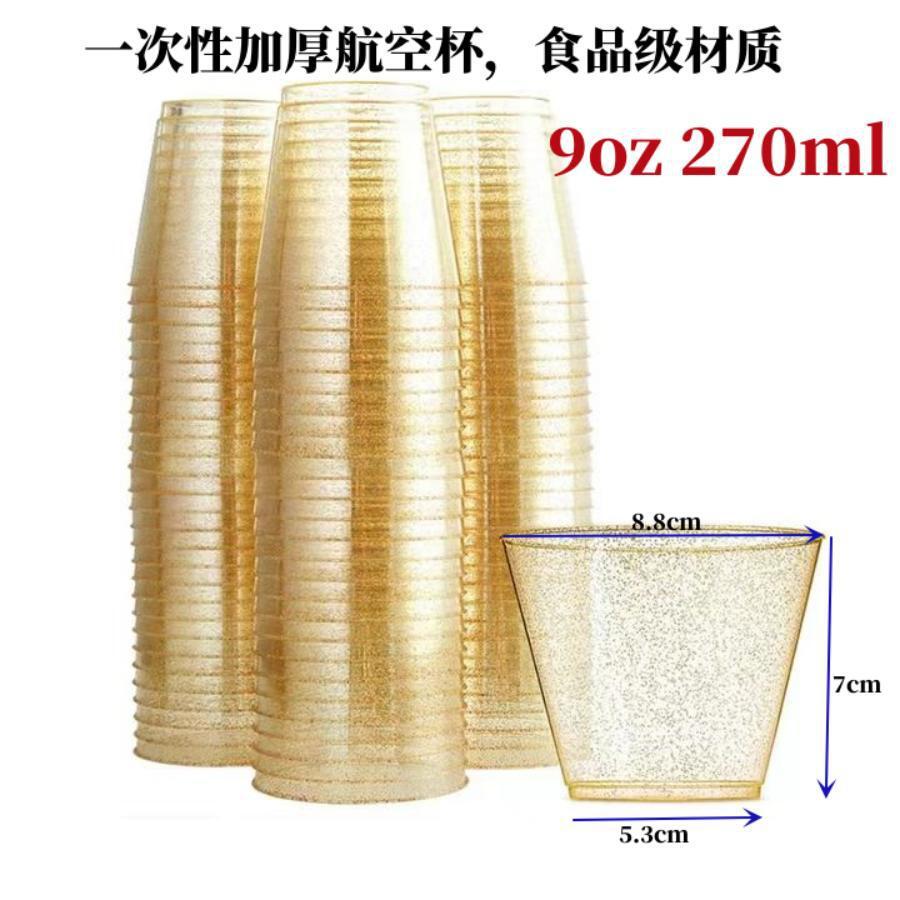 9オンス箔押し航空コップ丸口ウイスキー金色杯国境を越えた使い捨てプラスチックカップ