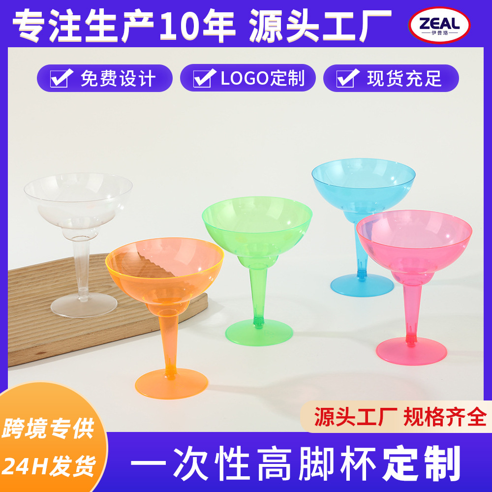 跨境荧光玛格丽杯 一次性高脚杯 发光塑料杯派对圣诞节家用杯现货