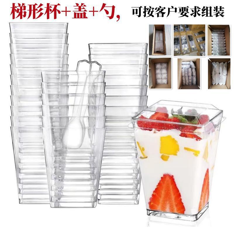 硬質角型ムースケーキカップ使い捨てプラスチック台形布丁カップヨーグルトデザートアイスクリームカップ蓋付き