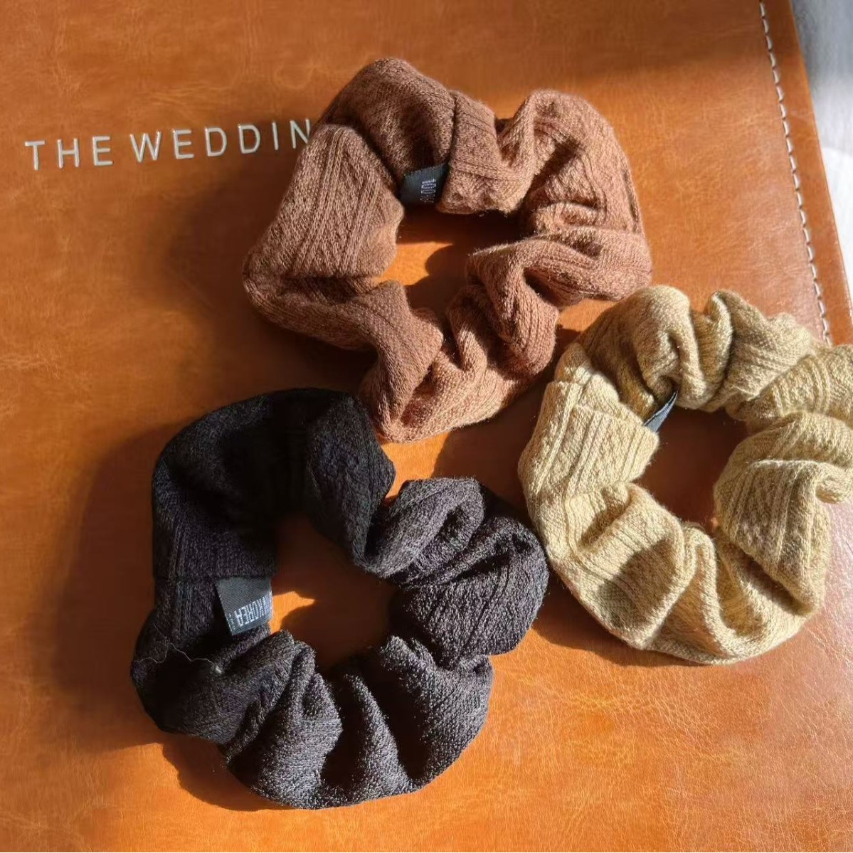 秋冬奶咖色布艺复古花纹大肠发圈女高马尾头花发 绳皮套头绳发饰