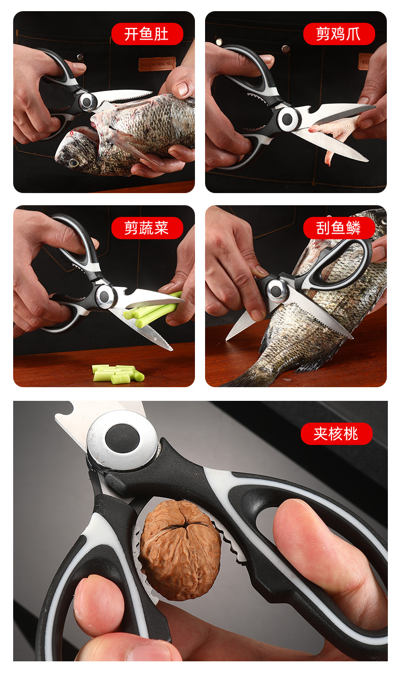 スポット卸売鶏の骨はさみ、キッチンはさみ、全鋼はさみ、家庭用多機能魚の骨はさみ、魚の殺し、バーベキュー、強力なはさみ