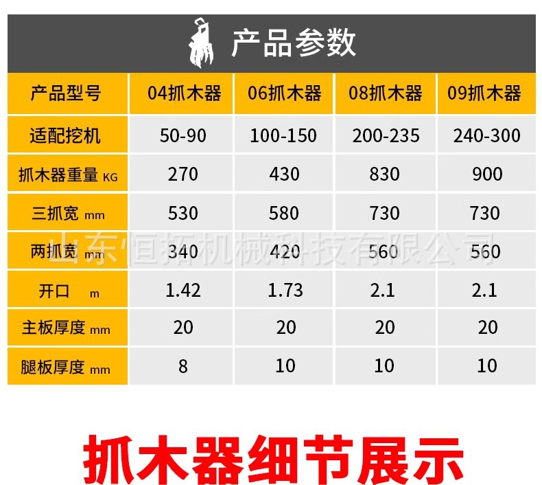 掘削機油圧クリップ木器ホイール式クリップ木機多機能五歯回転グラブ鋼機