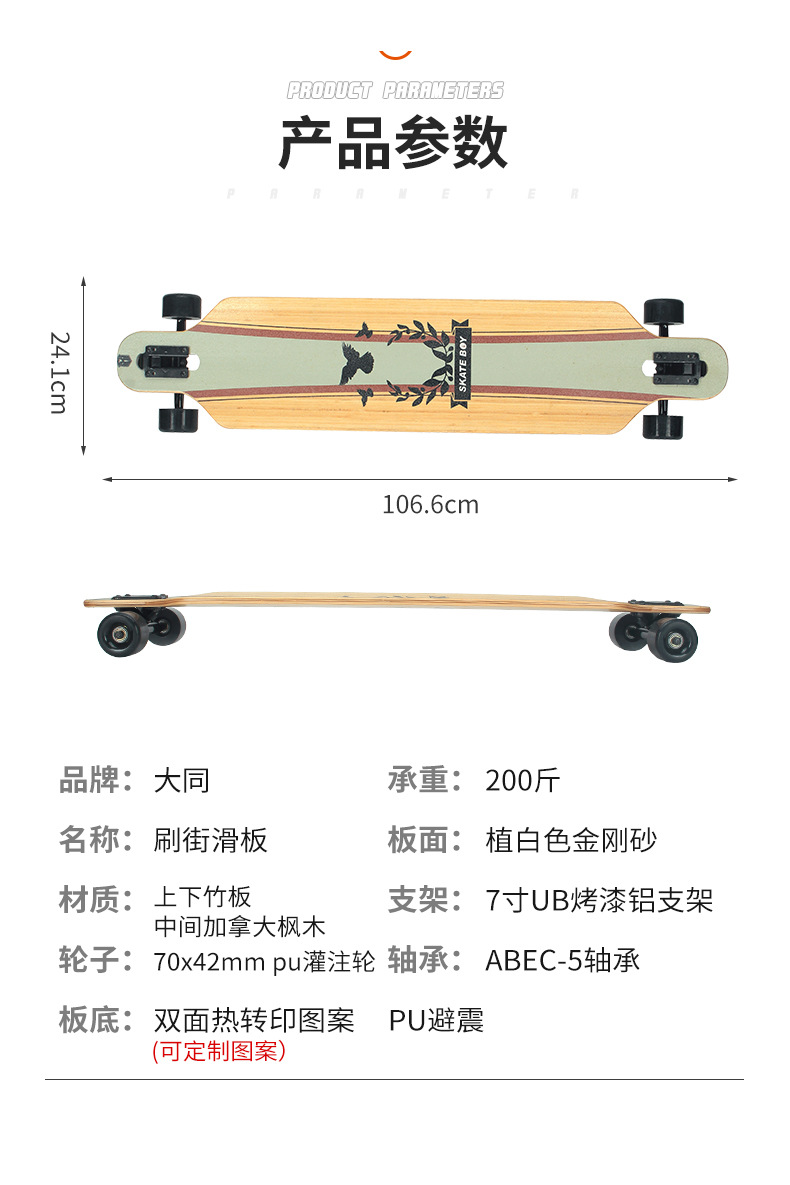 メーカー直販スケートボード速降カナダ楓木スケートボード長板装飾面長板ブラシ街長板スケートボード