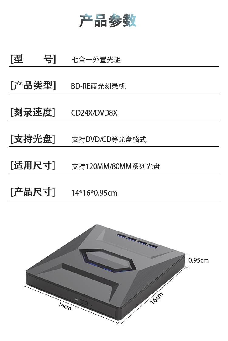 七合一多機能ブルーレイレコーダーType-C/USB外付けモバイルドライブ