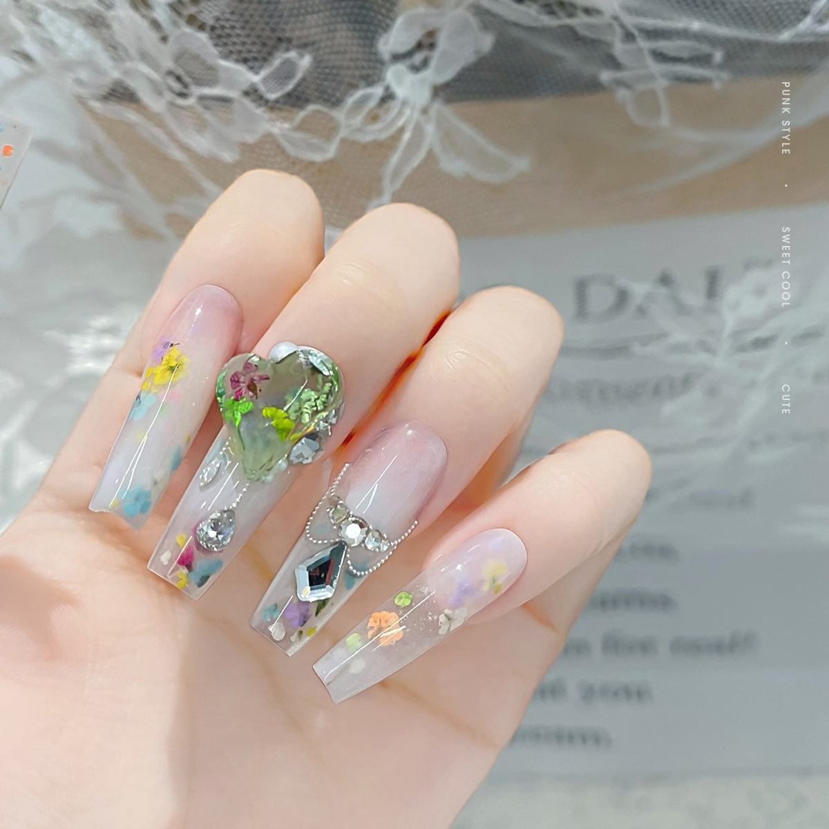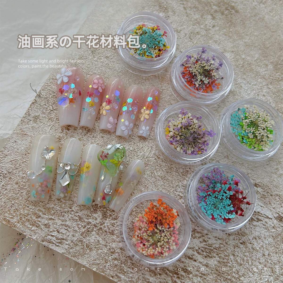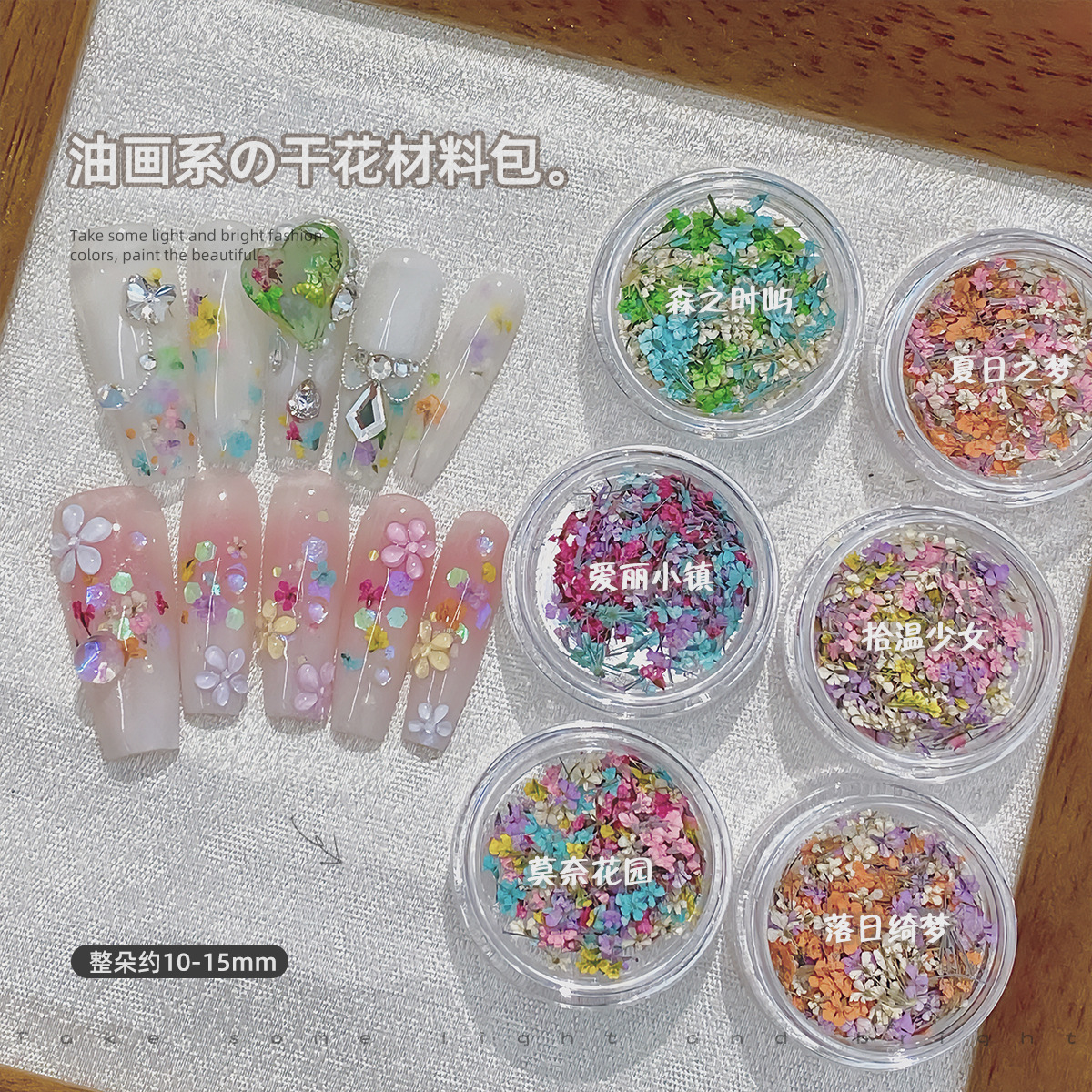 美甲饰品美甲干花莫奈花园油画系列彩色小花碎花混合diy材料包