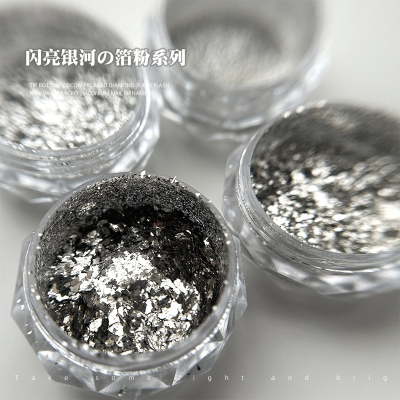 新商品の爆発的な純銀シリーズのフラッシュ牛郎星ドリル銀錫箔フラッシュ粉が細く輝いている極光ネイルアクセサリー