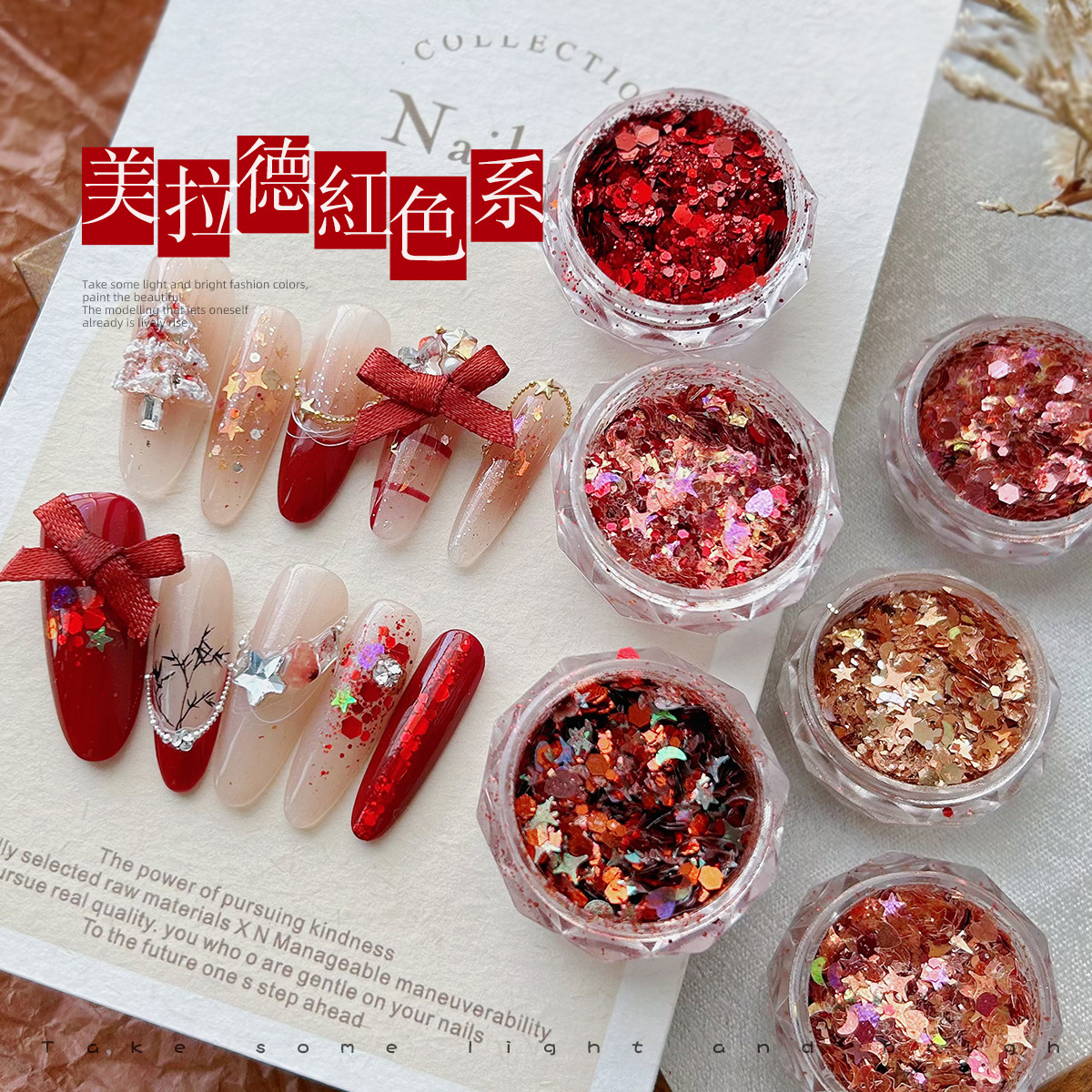 ネイルスパンコール美ラード新年クリスマス赤いキラキラピンク混色星芒愛超薄五角星月貼り