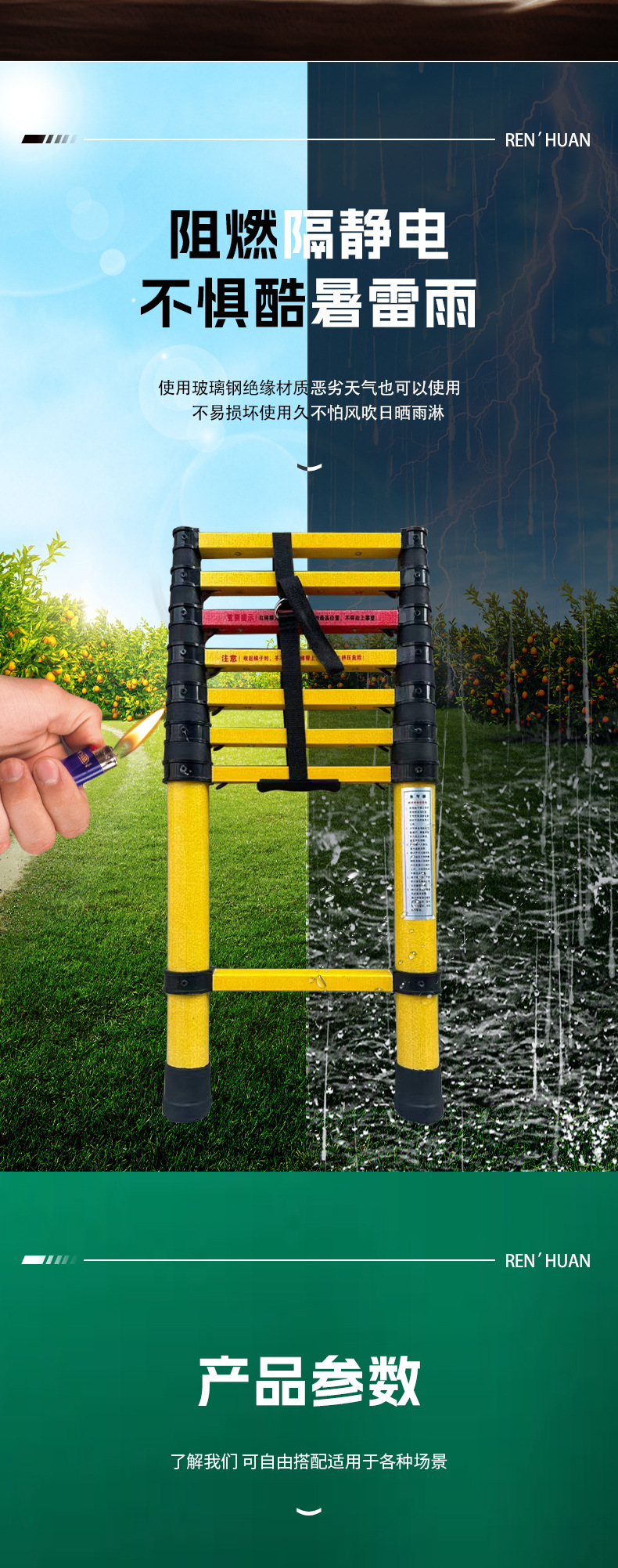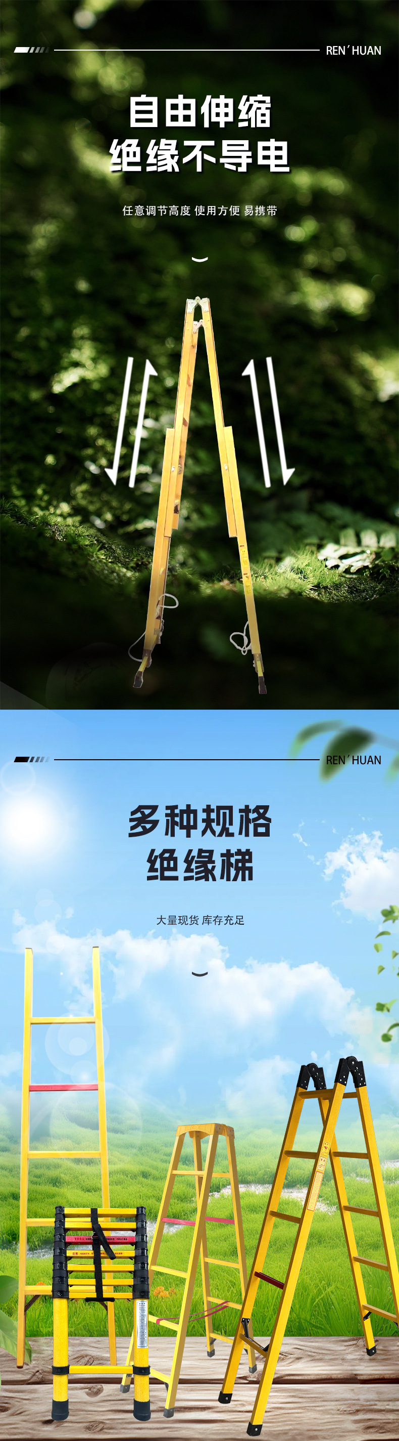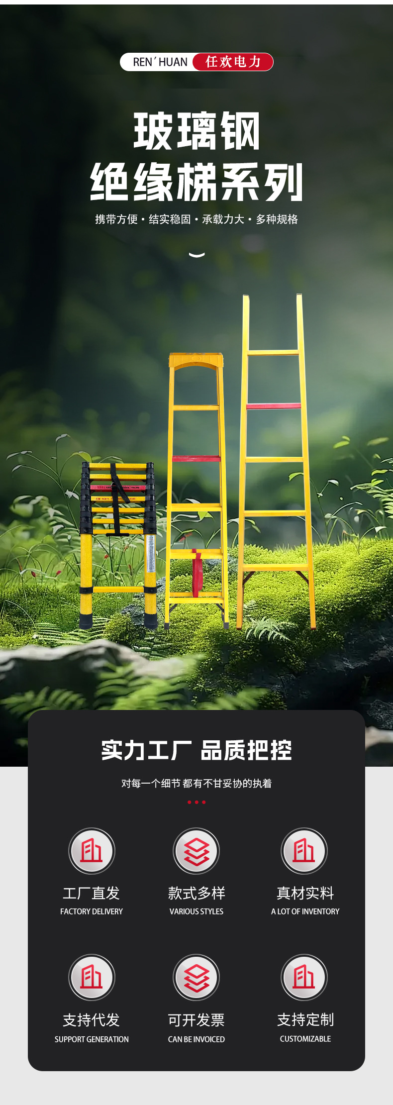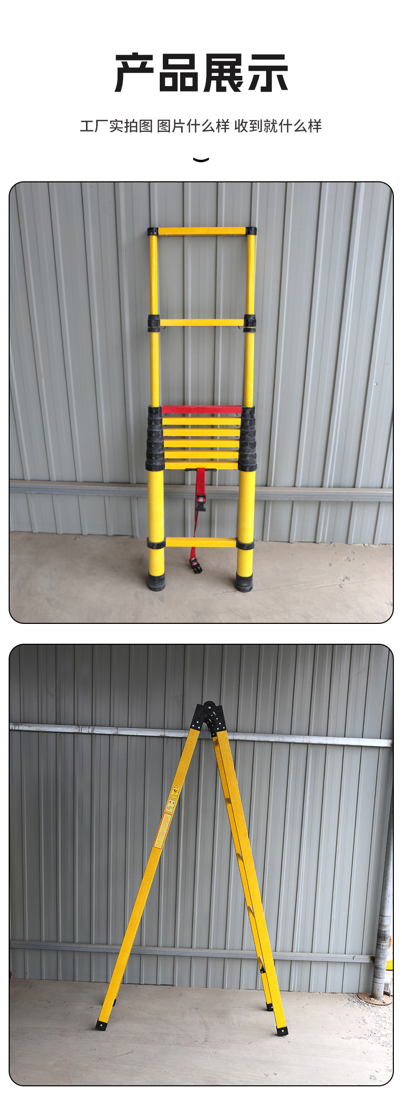 カスタマイズされたグラスファイバー絶縁はしご、電気技師建設用伸縮はしご、ジョイントはしご、ヘリンボーンはしご、電気高圧シングルはしご、安全はしご