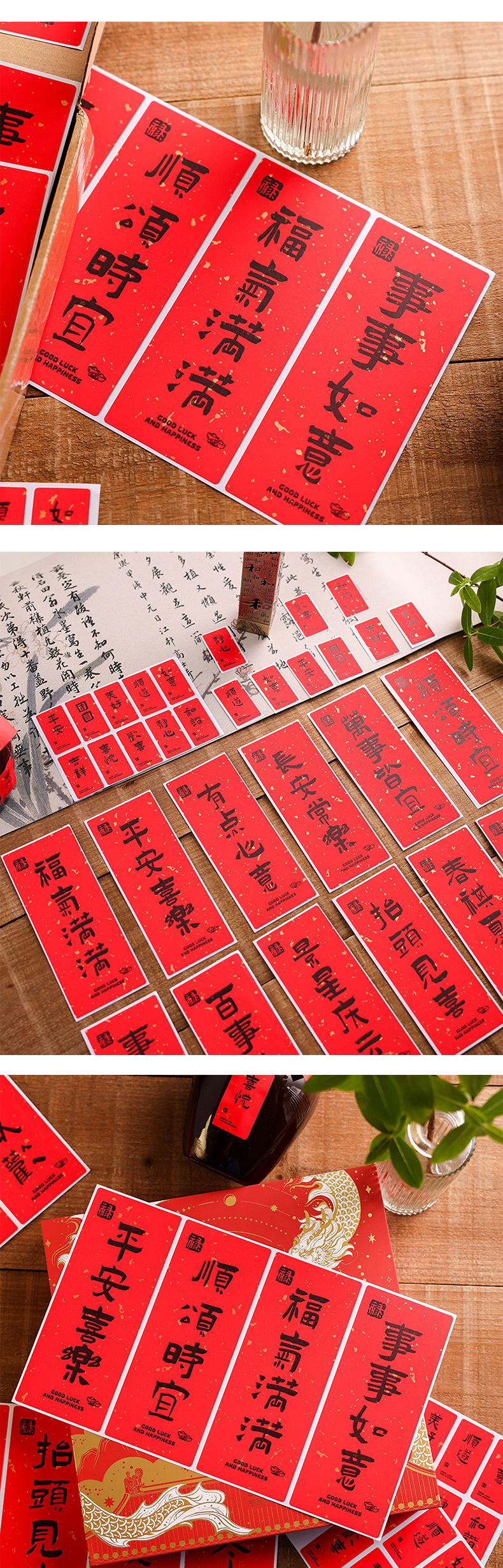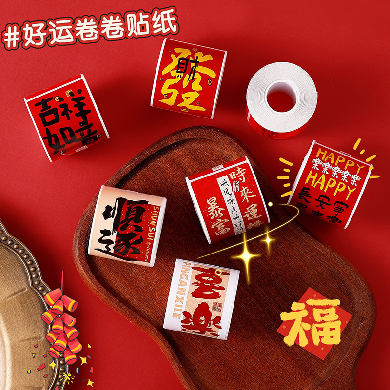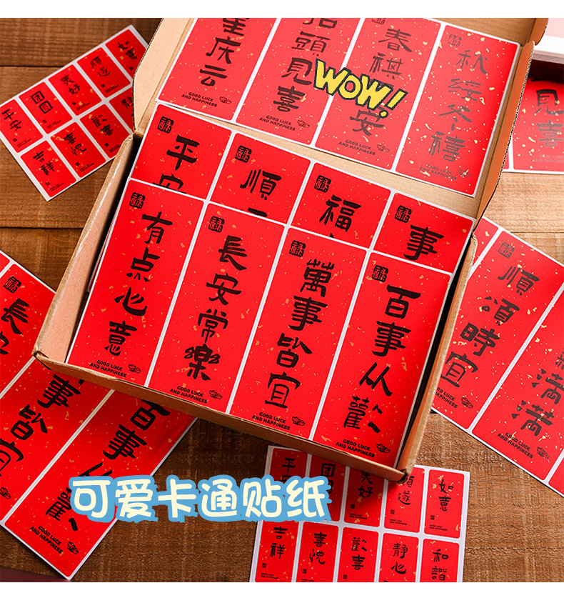新中国式祝福文字シール創意国風書道新年貼り絵手帳素材国潮装飾シール