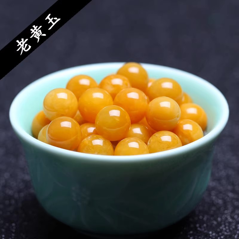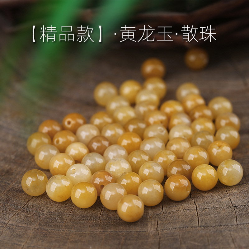 新疆天然老黄玉黄龙玉珠子散珠diy玉石手链手串配黄金金丝玉圆珠