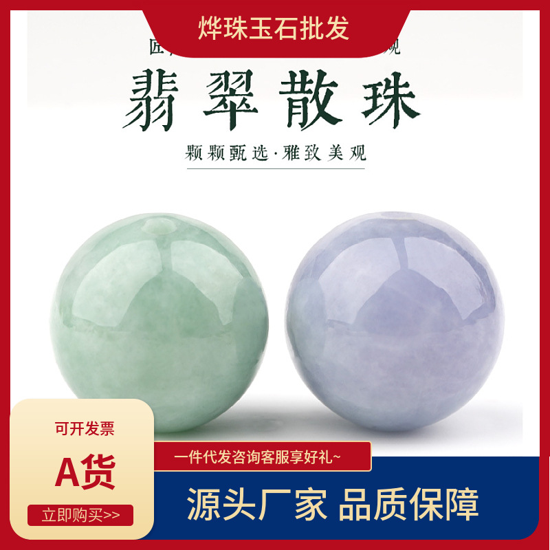 天然a品翡翠ビルマ玉珠散珠保真手作りdiy編み氷種玉珠ブレスレットネックレスロープ