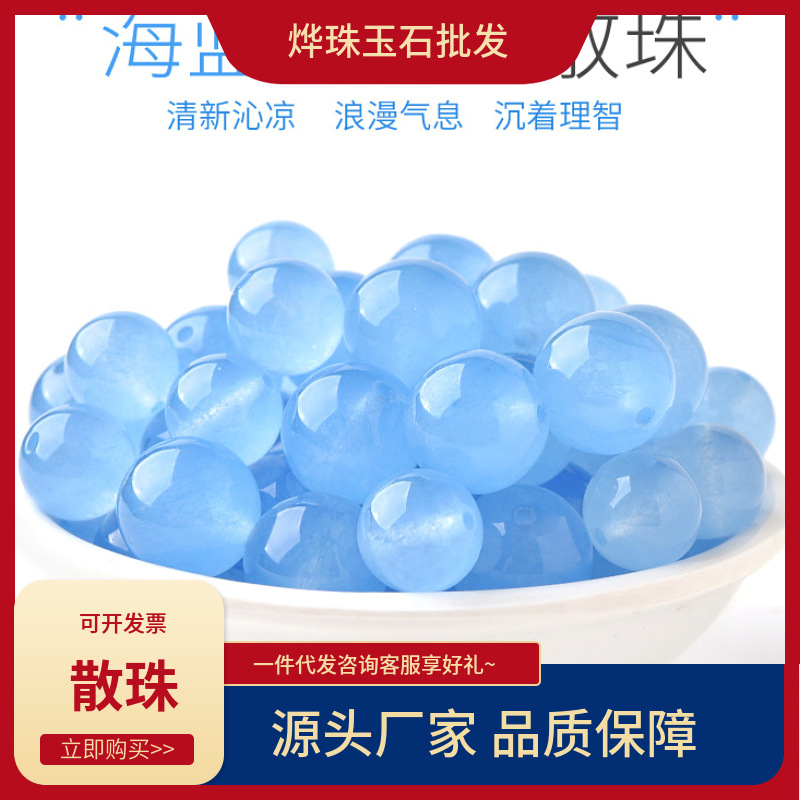海藍宝玉髄散珠円珠藍水晶数珠diy手作りネックレスブレスレット編みアクセサリー材料