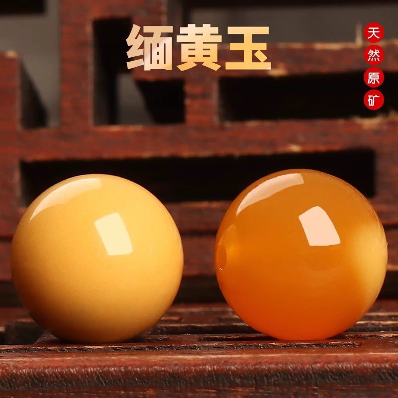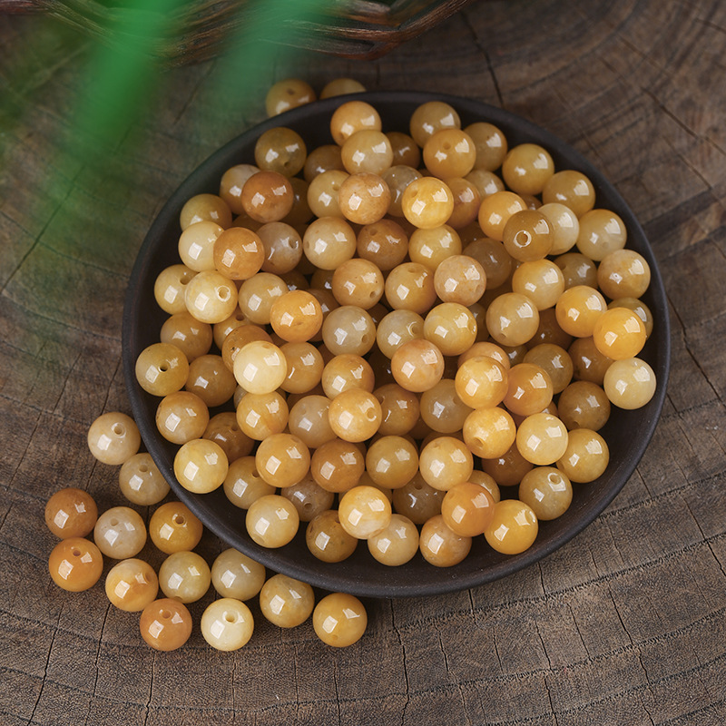 7a天然缅黄玉散珠子单颗diy手工串珠黄龙玉文玩配珠多宝缅红配珠