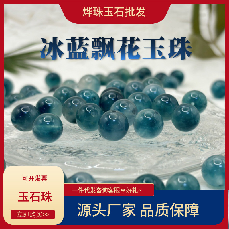天青冷凍氷藍漂花玉髄散珠氷種翡翠色円ビーズDIY手作りビーズ部品材料