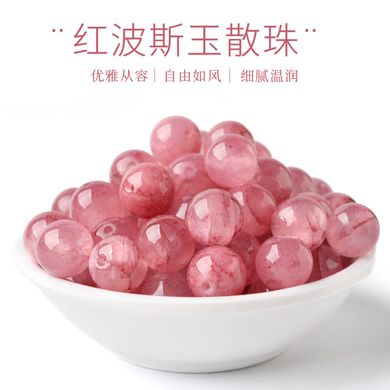 いちご色【粉黛】天然石血色ペルシャ玉髄円珠diy手作りネックレスブレスレット材料部品