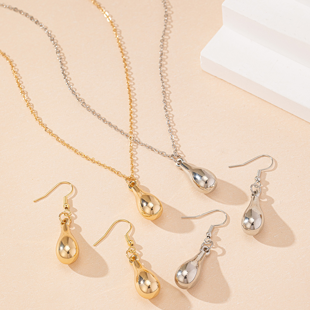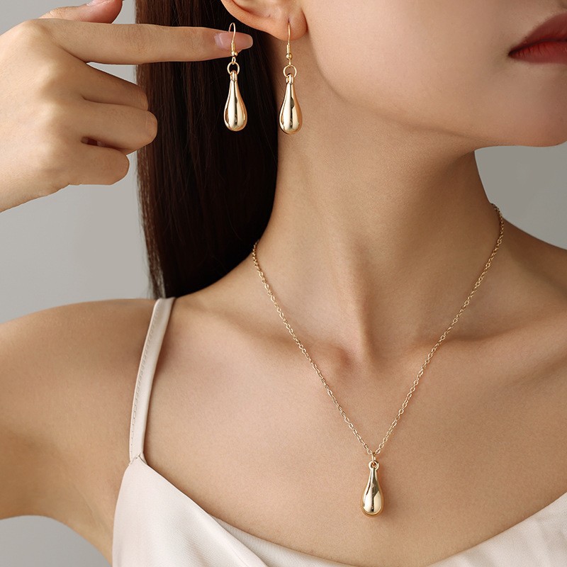 欧米のクロスボーダー夏の新型水滴形ネックレス水滴形イヤリングファッションシンプルアクセサリーセット卸売り青島