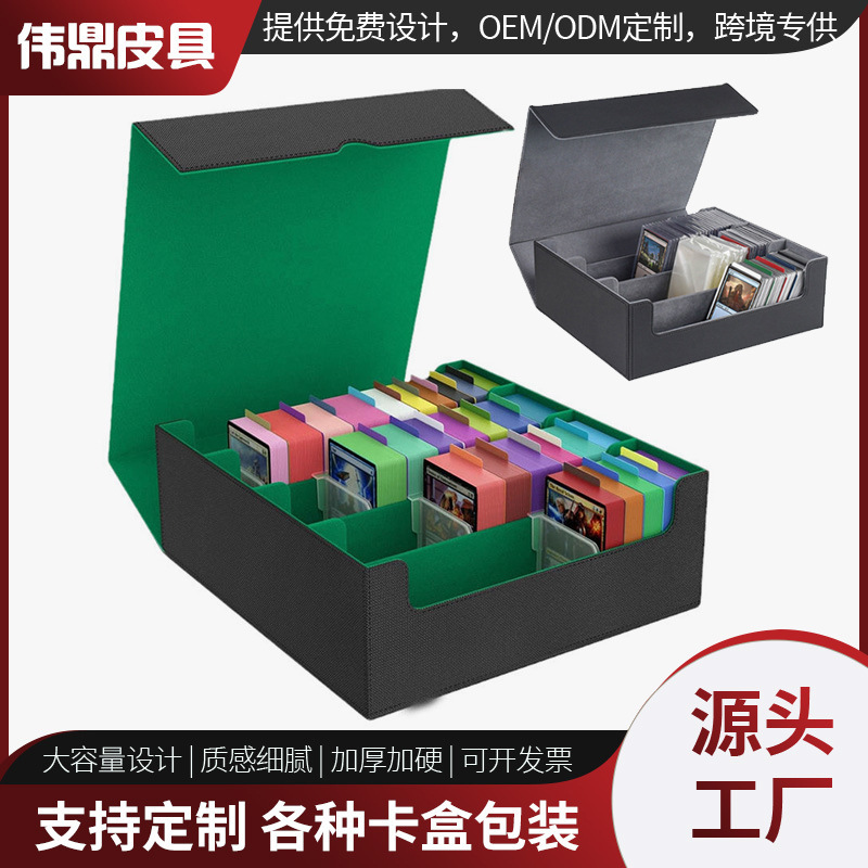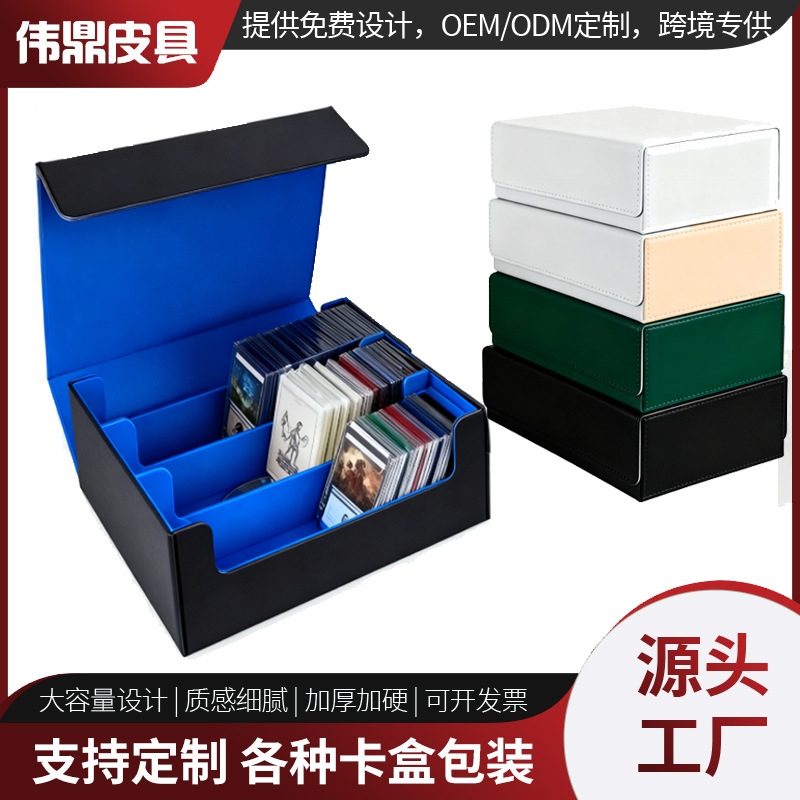 亚马逊热卖大容量四排菱形图案pu皮革卡片收纳盒双窗板游戏盒