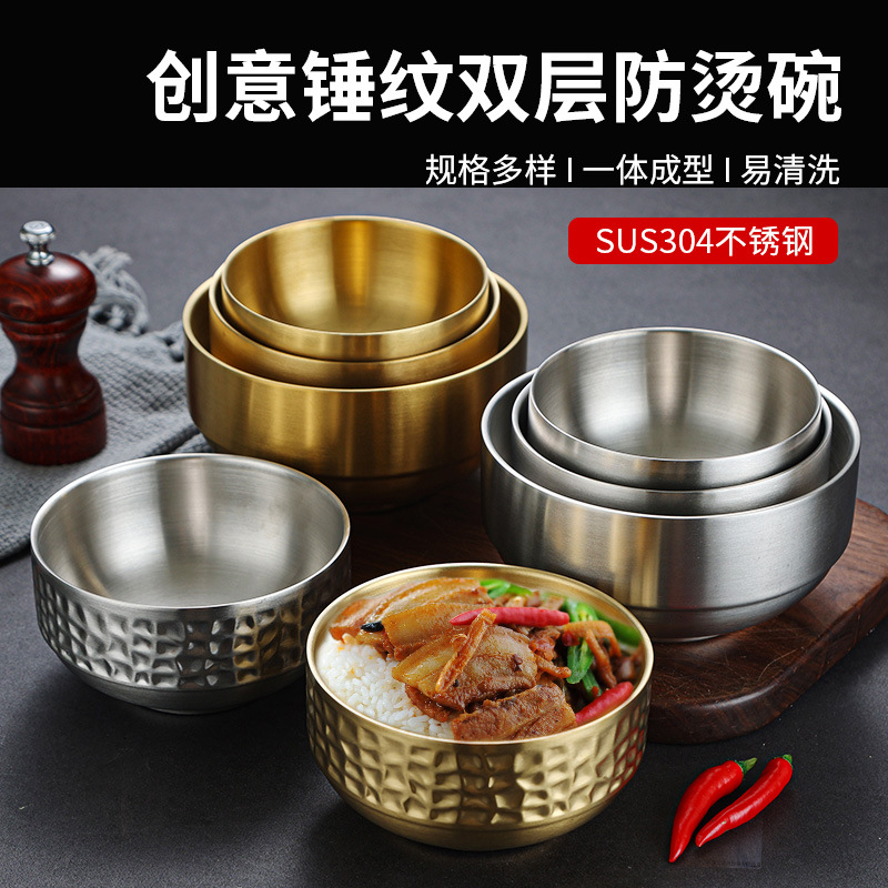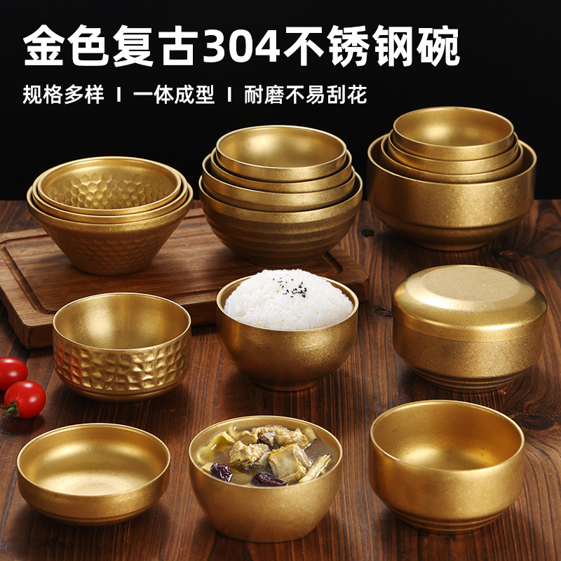 韓国式ステンレス茶碗304二重食碗金色冷麺碗ご飯スープ碗幼稚園碗火鍋料碗