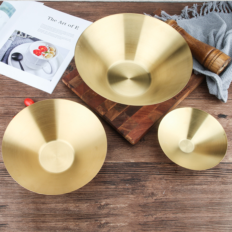 韓国式パスタ皿金色果物サラダ皿ホテル洋食ステーキ皿卸売り304ステンレスラーメンボウル