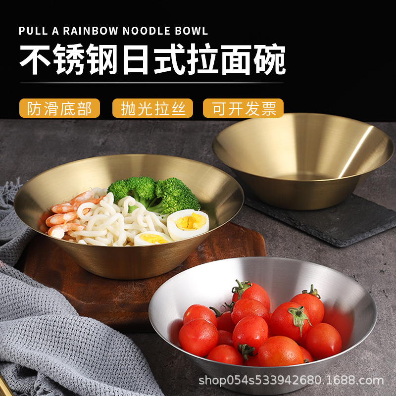 メーカー卸売り金色日本式304ステンレスラーメン碗創意単層円形韓国練飯練麺スープ碗
