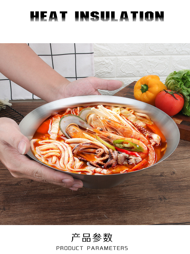 304ステンレス冷麺碗韓国式練飯碗二重断熱超大型スープ碗麻辣热碗闘笠碗商用
