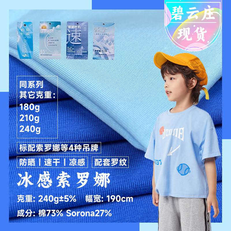 デュポンアイスフィールソロナ生地 冷感ストレッチTシャツ汗取り生地 平織りニットタグ付きソロナ生地