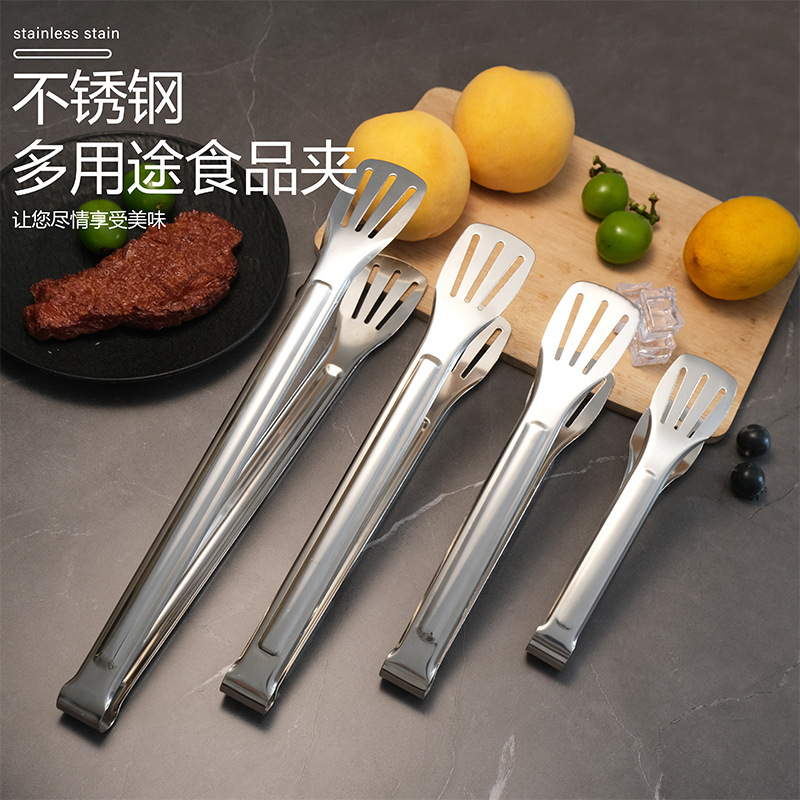 食品夹304不锈钢自助餐加厚食品夹面包夹烧烤夹三线夹加厚牛排夹