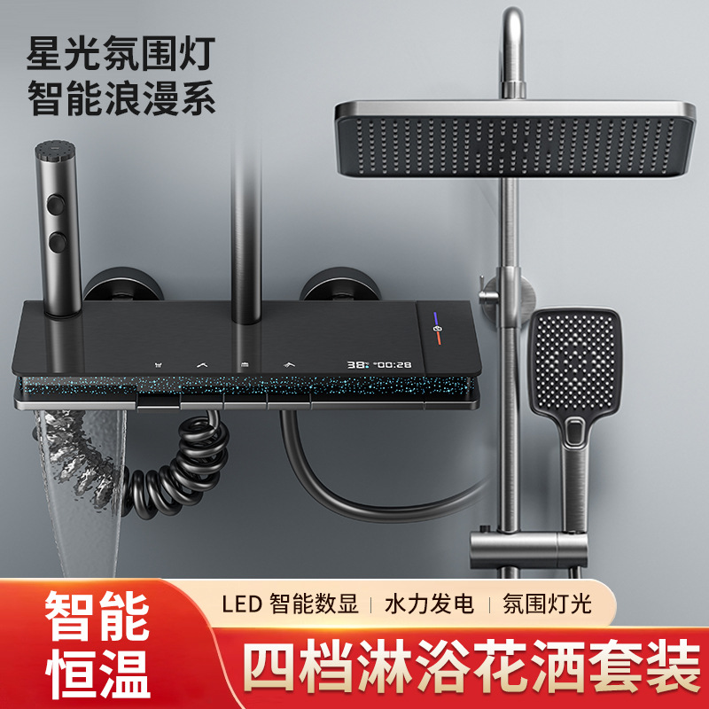 国境を越えた多機能恒温デジタル表示棚シャワーシャワーセット家庭用浴室浴室浴室増圧入浴器